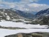 Bildet vart teke 19.juli. Det var berre frå vasskillet(ca 1250 moh) og ned til Yste Leirvatnet, som vises på bildet, at det var litt snø å trakke i. No er det meste som synest på bildet sørvendt, så det var nok langt meir snø på nordsida av Skridulaupen.