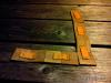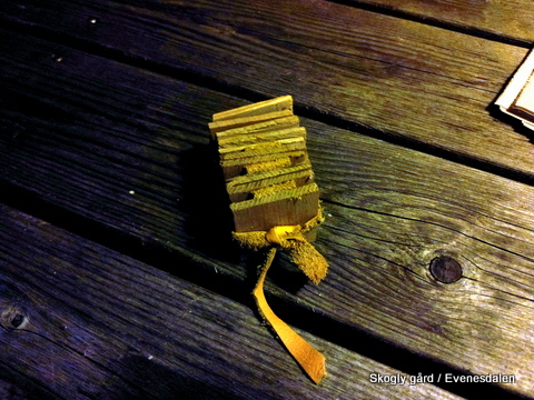 Målskala på trebitene/skinnet er så riktig så riktig. Bruken er for å måle fotspor/bjørneruker m.m. Tanken bak denne formen er at den skal være uknuselig og at den skal få plass i lomma.