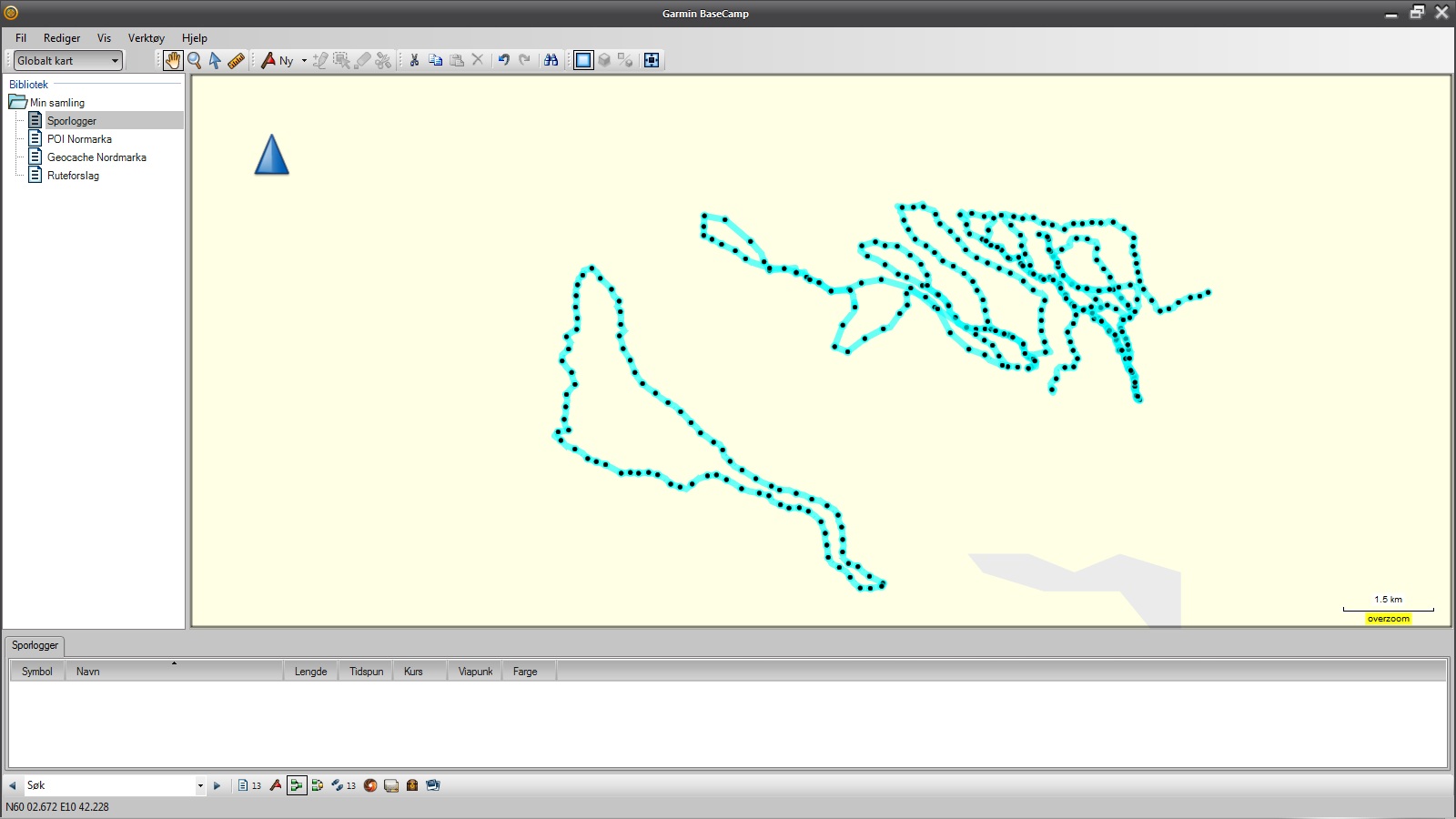 Kartene ble kjøpt fra mpx.no, og ble levert på brikke. Når jeg registrerte GPS`en på garmin så gikk det som smurt, garmin registrerer kart(brikka) som oki, men jeg får ikke oppdatert det siden det ikke er lastet ned og kjøpt fra garmin.com. Har prøvd å registrere kartene titalls ganger, men får det bare ikke til Jeg får høre med Garmin Norge eller Geoinsight som har skrudd sammen kartene for Garmin. Svaret på sporene ovenfor var forresten det meste av koller, daler, på stier, og utenfor stier i Mellomkollen naturreservat i Nordmarka. Her har dere POI`ene jeg har lagt inn. -