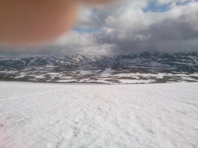15. Sikkert et bra valg Gikk fra Tinnhølen til Haukeliseter forrige helg, fin tur, men ganske mye snø, spesielt på sørvest vidda Her er et par bilder. Bla: Mannevatn med Veslenup i bakgrunnen, og et bilde fra ryggen vest for Veslenup med utsikt sørover. Klarte å presse en stykk pølsefinger inn på det ene bildet også.. Teltbildet er fra Besså.