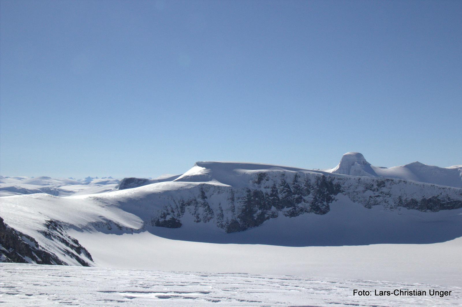 Hei, Her er bilder fra tur over "Tindefjellsryggen" i mai fjor (bilder tatt 15.mai 2015). Forøvrig så kjørte jeg ned på ski i rennen lenger øst, på Åsnes Amundsen m/BC-binding og full oppakning. Bratt, men går under gode forhold. Vær oppmerksom på at det ofte ligger en stor skavel på nordsiden av Skålefjellet, 1905. VI gravde oss gjennom denne i fjor, men her er det mulig å gå rundt via Skålebreen og Skålefjellet 1784. LC- 4 svar