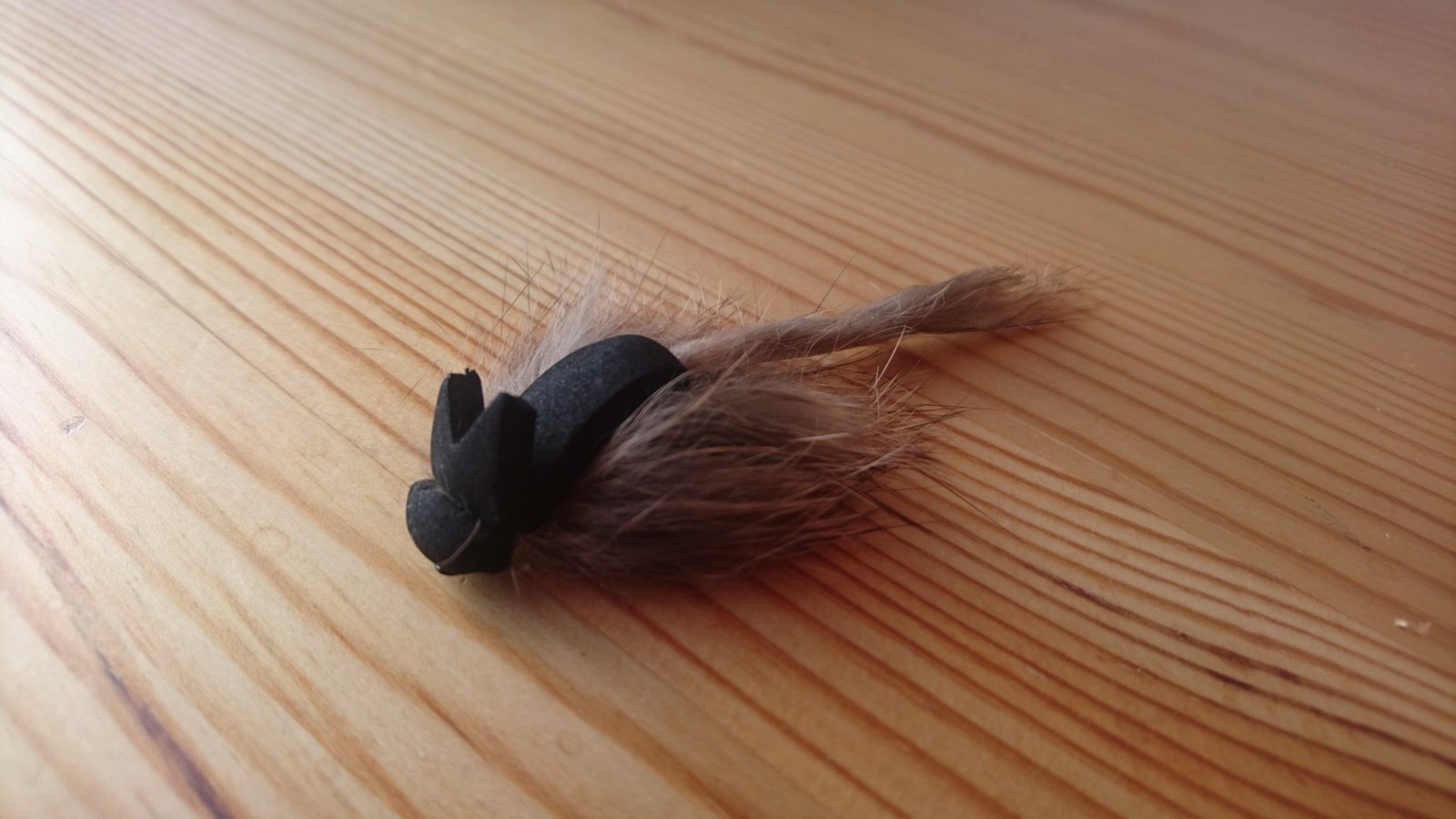 I utgangspunktet så tilseier mi røynsle at ein berre treng nokre få floge til ferskvannsfiske i norge, men avogtil er det kjekt med litt variasjon. Lemen og mus har eg funne i fisk ned til 300 gr, og det er jo litt meirmat i enn eit par mygg. Kropp er foam og kaninpels, hale er kaninstrimle, krok er laksekrok str 6, oppskrift frå nettet. Som rypejeger og fiskar satsar eg på smågnagarår 👍