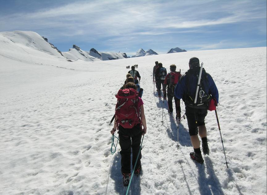 Første dag er transport til Cervinia, og 665 høydemeter på bre opp til Breithorn (4165). Enkel tur, men høyden kjennes godt. Fantastisk utsikt til Matterhorn og Monte Rosa. Dagen etter det tur til Gran Paradiso (4061m -det høyeste fjellet i Italia som ikke ligger i grensen til andre land). Først drøyt 700 høydemetere opp til Emanuelle-hytten for middag og overnatting på 2732m, deretter en tidlig frokost og 1300 høydemetere på strein/bre. Veldig vakkert landskap, og mange timer i høyden.