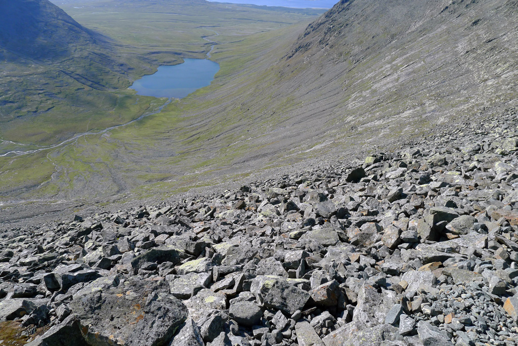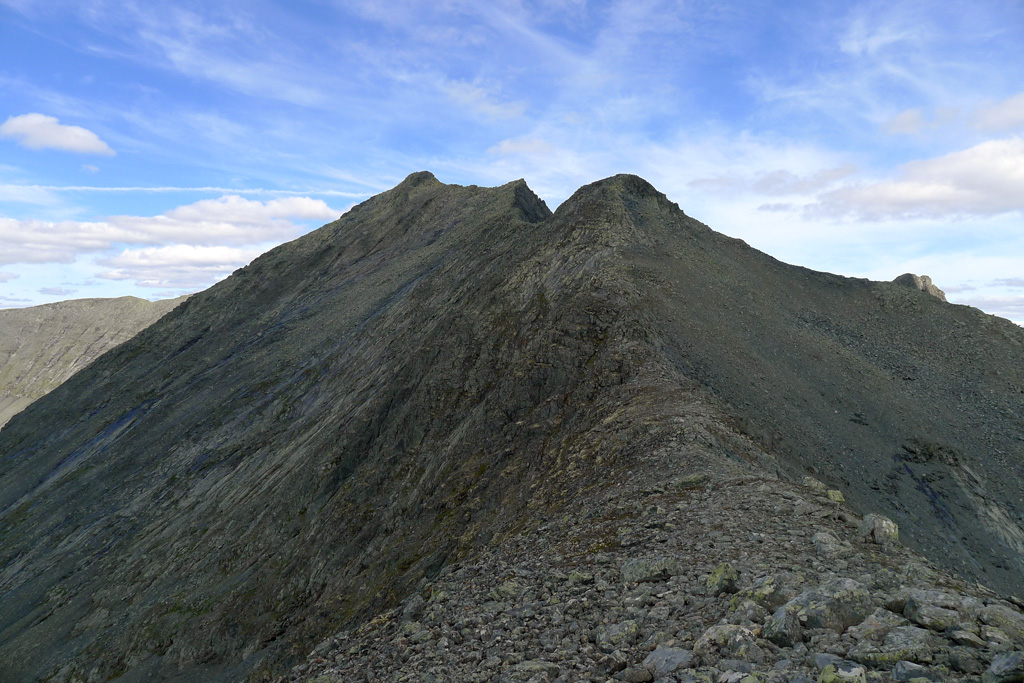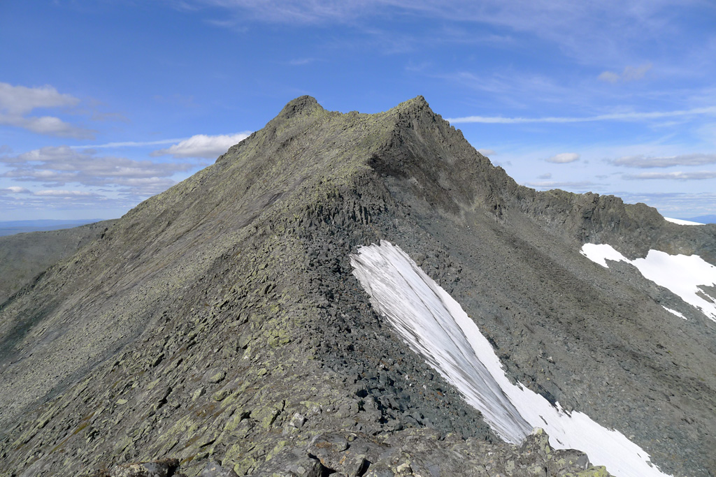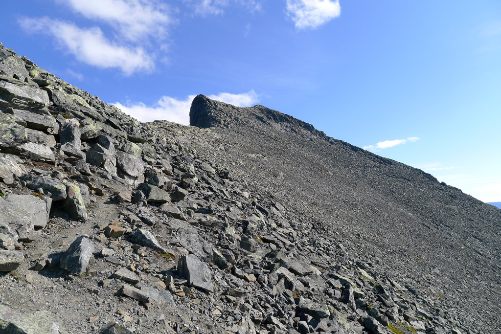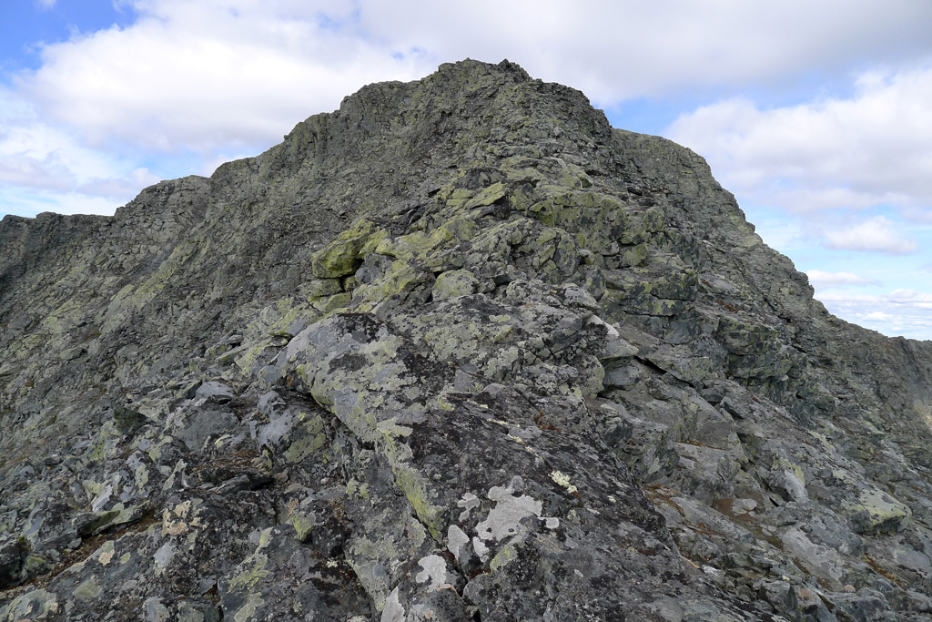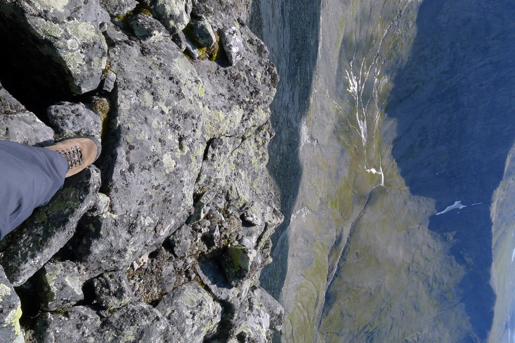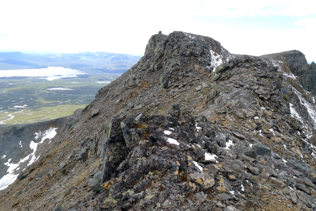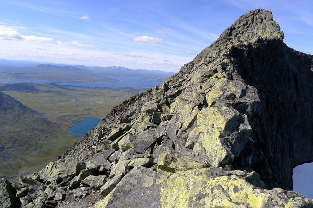 Hadde en fantastisk tur i Sylane denne helga. Har lenge drømt om å gå Syltraversen og når både værmeldingen var god og de hjemme var opptatt med andre ting dro jeg av gårde. Sekken var allerede pakket etter mislykket (samme) tur forrige helg da jeg snudde pga. dårlig sikt og regn. Jeg kjørte til Nedalshytta fredag kveld og parkerte der. Gikk litt over en time i retning Sylstasjonen før jeg slo opp teltet i nydelig vær. Har blitt bitt av "light" basillen og for første hadde jeg en sekk på under 10kg (inklusiv mat og 2 liter vann) på en tur med to overnattinger. Våknet tidlig lørdag morgen og kl 8 var jeg på beina igjen. Gikk videre i retning Sylstasjonen til nødbua ved Ekorrdørren. Stoppet der og drakk rikelig med vann fra bekken (brukte vannfilter) da dette er siste mulighet for rennende vann på flere timer for de som går Syltraversen. Hadde i tillegg 2 liter vann i ”camel back” i sekken. Fra nødbua går stien opp mot kammen, hvor selve traversen starter, langs scooterleden til Sylstasjonen. Herfra tok jeg av til venstre langs kammen hvor det ikke er merket rute. Etter vel en time langs kammen kommer jeg til turens første luftige parti som leder opp til den Svenske toppen av Storsola på 1728 moh (på kartet mitt avmerket som Tempelet). Dette partiet var nesten i overkant luftig for meg men etter en pause med Kvikk Lunsj og mye drikke dristet jeg meg videre opp. Oppe på varden på 1728 moh møtte jeg to unge Svensker i full klatremundur. De var festet til hverandre med tau og hadde hjelm. Betryggende… Videre gikk veien til den norske Storsola på 1710moh. Ikke på langt nær så luftig denne biten. På Storsola hadde jeg god utsikt over kammen videre som først gikk et stykke nedover før den gikk bratt opp over to mindre topper og videre til Storsylen, 1762 moh. Den nest-siste biten før Storsylen er omtrent like luftig som opp mot toppen på 1728m beskrevet ovenfor så den gikk greit. Men siste kneika opp til toppen bød på problemer for meg. Skjønte fort at her måtte det minst to Kvikk Lunsj til. Etter lang pause med Kvikk Lunsj klatret jeg på alle fire helt opp til den siste veggen på ca. 3m men her turde jeg ikke klatre opp uten sikring. Jeg gikk derfor 4-5m ned igjen og ut til venstre (sett der jeg kom fra) og opp på Storsylen hvor det fremdeles var luftig men ikke så bratt. Har tegnet inn ca. hvor jeg gikk i bildet nedenfor. Vel oppe på Storsylen møtte jeg masse folk som hadde kommet den andre veien opp. Jeg hadde tenkt å gå til Lillesylen også men gikk tom for vann på vei dit så jeg gikk ned mot Syltjønna isteden. Satte opp teltet igjen mellom Syltjønna og Nedalshytta så det ble kort tur tilbake til bilen på søndag. En fin tur som anbefales for de som liker litt luft under vingene! Klikk på bildene for å få større bilde. EDIT: Jeg er litt usikker på om jeg har riktig navn på de to toppene på 1710 moh og 1728 moh. Toppen på 1710 moh er noen steder kalt Riksrøys 155A og andre steder Storsola. Toppen på 1728 moh noen steder Storsola og andre steder Tempelet. Noen som vet?