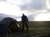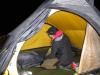 Nå er jeg nesten to meter høy, og den ekstra takhøyden som Gimle4 gir gjør at jeg synes teltet føles ekstra lett hver gang jeg stapper det ned i sekken. Har av ren galskap dratt med det teltet på et par aleneturer også for å kunne nyte komforten med ekstra plass når en kan ligge alene, strekke seg som en vil, og nyte utsikten utav den store vindusåpningen selvom regner høljer ned og vinden prøver å feie deg avgårde om du drister deg utenfor. Teltet er overraskende vindstabilt selv midt på Hardangervidda med skikkelig drittvær. ("Sommeren" 2011) Taket er såklart høyest midt på, tvers over fra ene inngangen til den andre inngangen. Men veggene kan spennes godt ut til siden, så det er god plass innvendig. Jeg kan såklart ikke stå helt oppreist, men damen som er 172 høy klarer fint å dra på klærne oppreist om hodet bøyes litt. Selvom min sovepose vel kan komme i kontakt med innerduken om jeg har beveget meg for mye iløpet av natten, så har det ikke vært noe problem med fukt selv etter flere dager med fukt og møkkavær. At det ikke har vært et problem kan nok være fordi det egentlig ikke er noe plassproblem, selv jeg har mer enn nok plass i lengderetningen. Det er faktisk et såpass godt telt at det ble ettertraktet blandt flere mus på vidda sommeren 2010. Det regna godt den sommern også, og jeg opplevde flere ganger å bli dratt ut av min gode søvn av min kjære damen, fordi mus prøvde å bygge bol under bunnduken. Hun satte visstnok ikke særlig pris på bevegelsene, og min oppfordring om å ikke se på gulvet som beveget seg men heller sove resulterte kun i et iskaldt blikk. Musa ble jaget, og at den istedet hadde tilbragt resten av natten oppi den ene fjellstøvelen hennes fortalte jeg merkelig nok ingen ting om dagen etterpå. At dette teltet blir tatt med på flere turer er fordi det har god utsikt, gir litt ekstra komfort, og har god takhøyde til å kunne gjøre annet innendørs enn å ligge flatt ned og helt rett så en ikke skal komme borti tak og vegger. For de som vil bære litt lettere, og ikke har problemer med at en må smyge rett ned i soveposen når en er på vei inn i teltet, og som bare bruker telt til soveplass så kan nok mye annet anbefales. Forteltet gir heller ikke plass til særlig mer enn primus, kokekar, noen øl, sko og slikt. Pleier å bruke andre inngangen/forteltet til plassering av sekker osv. Plass nok til å stable opp flere sekker++ i høyden. Teltet anbefales om en ønsker å bære litt ekstra. Ser også at Helsport har begynt å oppgi den reelle vekta på 5.1kg også nå. Tidligere var det oppgitt noen hundre gram lavere.