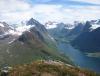 Går du Slogråsa er det snøfritt til kote 1200, deretter blir det nok stort sett snøføre til topps vil jeg tro. Den fineste ruta til Slogen etter mitt syn er fra Urke gjennom Langesæterdalen, og her var det snø fra kote 700 for én uke siden som bildet tatt fra Saksa viser. I Habostaddalen skal det være fremkommelig, men som essem sier må du nok regne med å møte en del snø underveis. Jeg ville ha tatt med ei isøks mest med tanke på å sikre returen. -