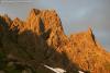 21. Sofra-ruta: Innsteget er forholdsvis greit å finne (spesielt hvis du går Holtanna først og får oversikt over starten på Sofaruta ovenifra under den turen), det samme veien videre når du kommer opp til den såkalte sofaen (som gir ypperlig utsikt), etter denne beveger du seg kanskje 3-4 meter horisontalt til høyre før du går opp gjennom et slags "hakk" eller åpning, veien videre ok. Mye klyving og lite klatring opp denne passasjen, men pga høyfjell er det seriøst nok hvis det blir dårlig vær. Retur via eggen på Mohns topp der en del sikrer spesielt i vått vær, valgfritt. Molladalen er fantastisk og førtse gang man kommer opp juvet og får tindene midt i mot glemmer man aldri Men som en god venn og innfødt sier: det er flott, men også vått (med tanke på kystklima,mange har vært i Molladalen og aldri sett annet enn tåke) Obs: Litt opp til venstre for innsteget (ca 0,5-1 tl) har det i perioder ligget noen slynger rundt en meget løs klemblokk som tydeligvis er brukt til rappell for folk som har startet feil og valgt en rute for mye til venstre (vi traff noen der sommer 08 ), jeg ville personlig aldri brukt den klemblokken (det er såvidt steinen forsvarer den betegneslen) hvis man først går feil, da den er liten og ligger ganske langt ut på kanten (noe man ikke ser før man har oversikt et stykke høyere opp i veggen) Anbefaler å kombinere det hele med start Holtanna, deretter Sofaruta og Bladet før retur ned Mohns renne som er løs noe man bør være obs på etter lang dag på tur. Gir en del gåing, flott tidvis luftig, men enkel klyving/klatring totalt ca 6-7 tl i et fantastisk området I fører står det at Holtanna er 3 tl, den første valgte vi å ikke sikre da det er mer grufseklyving i litt løs renne og ikke spesielt eksponert. Videre opp vil nok de fleste (også dere ?) føle behov for tau, det er meget enkelt opp både klatremessig og veivalg, men eksponert og luftig. Dersom dere har flere dager så er Raudetårnet gradert ca 5-, flott klatring men med et skikkelig eksponert flytt når man runder et hjørne på vei opp (taulengde 2 hvis jeg ikke husker feil). For hardere grader er Tårndalen og deler av Jøhnshornmassivet flott. Faste rappellankere på de fleste rutene, sjekk fører.