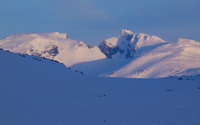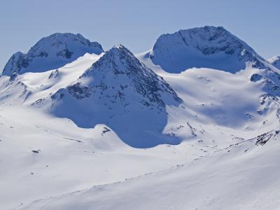 Falketind Slettmarkhø og Slettmarktind På Raudalsbandet Saksa i morgensol Semmelhols- og Visbretind På Bukkeholsbreen Store Bukkeholstind På Bukkeholsbandet