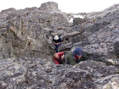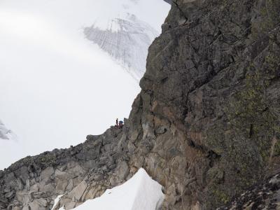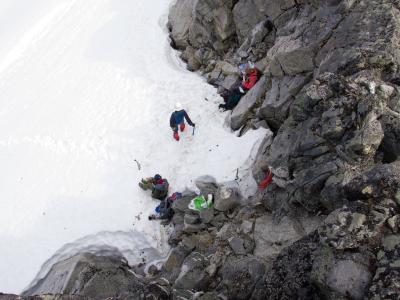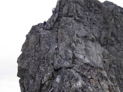 Har gått hele traversen fra vest mot øst, og da er det ikke rapeller i det hele tatt. Har også gått til Midtre fra øst, og da brukte vi et 40 m tau som var mer enn langt nok til rapellen ned fra Østre. Det forutsetter at du starter rapellen ute ved kanten av nordstupet.