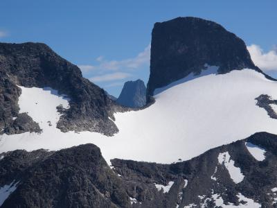 Holm's bilde: Svarthetta til venstre, Trollhetta til høyre og Snota bakerst. Dag Evje's bilde: Enig med tidligere forslag, Bings gryte.