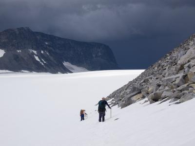 Slettmarkbreen bør ikke gås uten å være innbundet i tau. Er den snøbar, kan den gås uten tau, men da må alle ha stegjern. Øverste del er forøvrig ganske bratt.