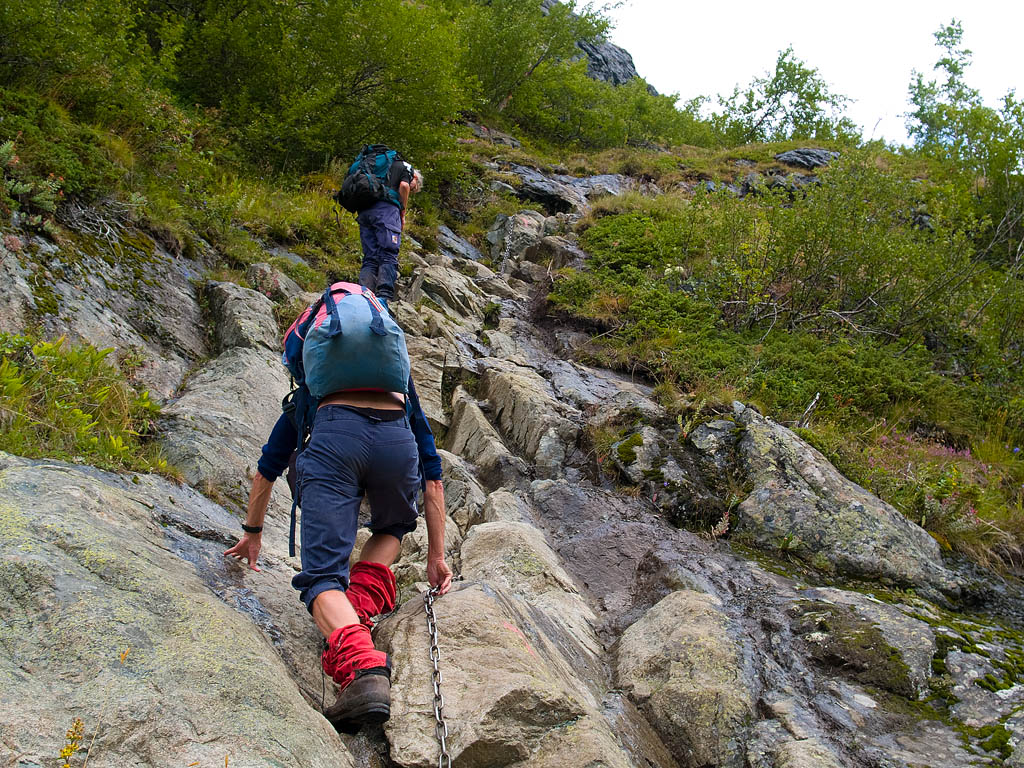 22. Tragisk tilfelle, men jeg synes nesten det er ufattelig at det går an å omkomme i Bukkelægret. På første bildet går stien opp det grønne draget til venstre i bildet. Litt over midten av bildet skjærer stien ut til høyre ovenfor svaene. Det andre bildet viser det som kanskje er den "vanskeligste" passasjen.