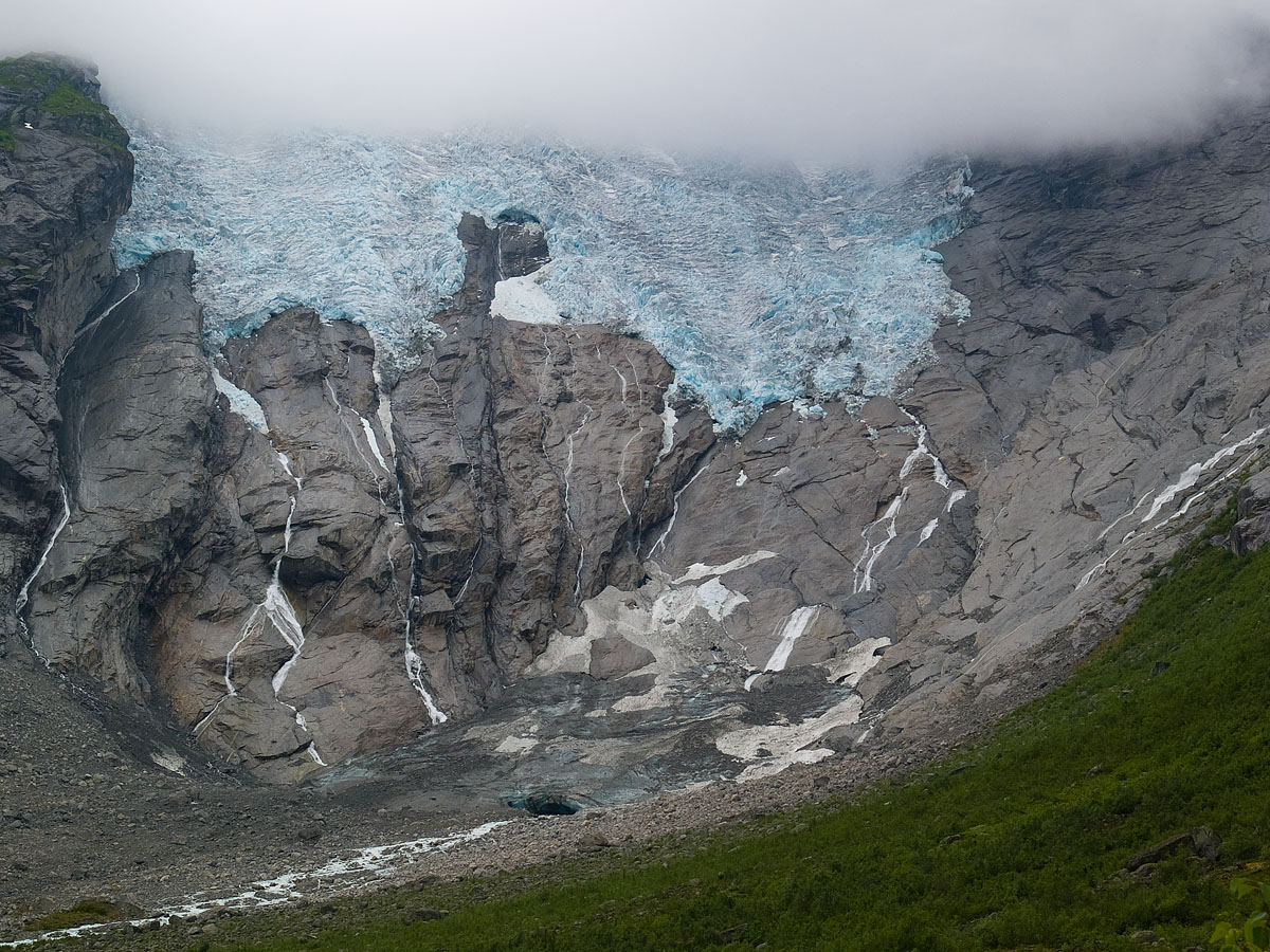 Den spektakulære Bergsetbreen er i dag et trist syn sammenlignet med hvordan den framtrådte for bare ti år siden. Den har nå fullstendig mistet fotfestet til dalbunnen. Dette gjør at stadige ras er med på å forkorte den. Skulle vi oppleve de samme framstøtene av Josten’s brearmer som på nittitallet, kan dette forholdet med at den har mistet fotfestet, gjøre at den aldri når ned i dalbunnen igjen. Trist, men sannsynlig. Nigardsbreen ser derimot ut til å klare seg bra. Den har da også en lang responstid på det som skjer oppe på storbreen.