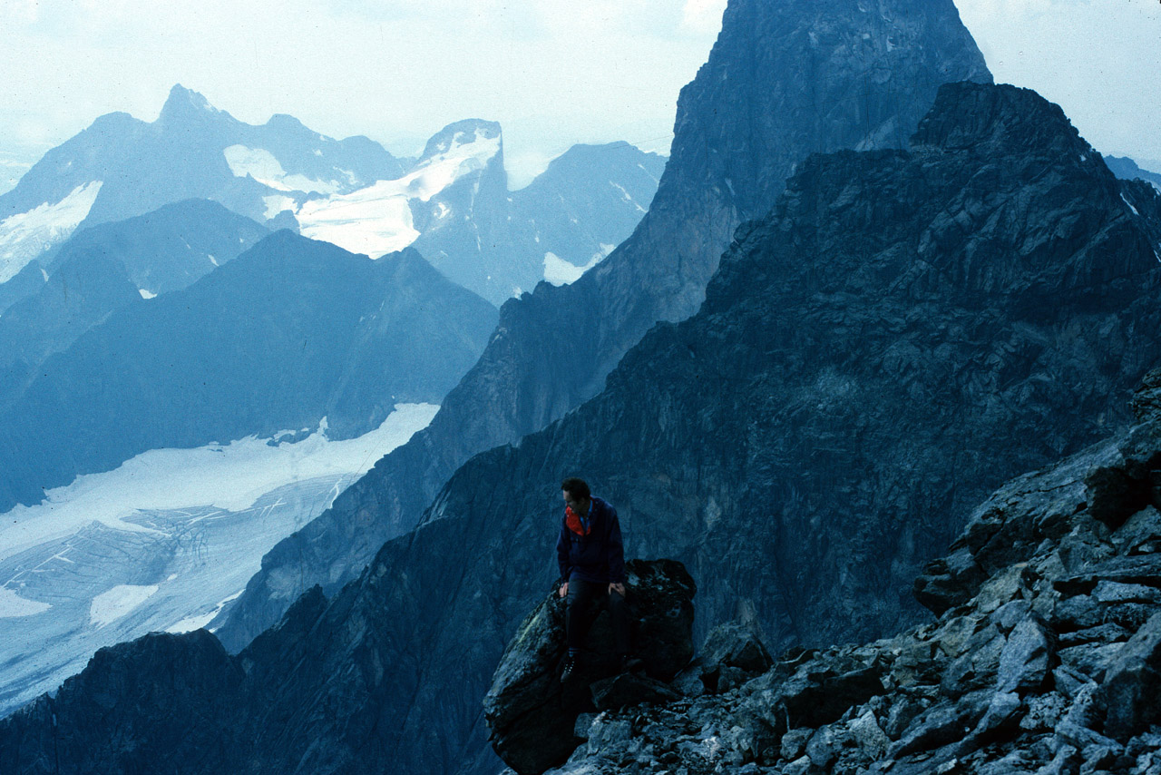 Jeg er mektig imponert over 500fjell sine eskapader i fjellet. Når jeg leser om alle hans turer i sommer og den guts og det tempo han legger for dagen, føler jeg at geriatrisk avdeling ligger nærmere for meg. Og så er det sympatisk at det skinner gjennom at dette er noe han gjør fordi han er glad i fjellet og ikke for prestasjonens skyld. Jeg må bare ønske lykke til med fortsettelsen. Jeg beklager, Håvard, hvis det bildet du sikter til fra i fjor, gir inntrykk av et forsøk fra meg på å gjøre det mer "dramatisk" enn virkeligheten. Jeg bare knipset et bilde idet Hans var på tur opp på toppblokka, og det ble ikke gitt noen ordrer om en spesiell positur. Det hender noen ganger at bilder kanskje synes luftigere enn virkeligheten. Jeg legger ved et bilde fra Styggedalsryggen hvor toppen er kuttet av Storen (beklager den elendige tekniske kvaliteten). Dette synes jeg gjør Storen enda mer "dramatisk" enn i virkeligheten.
