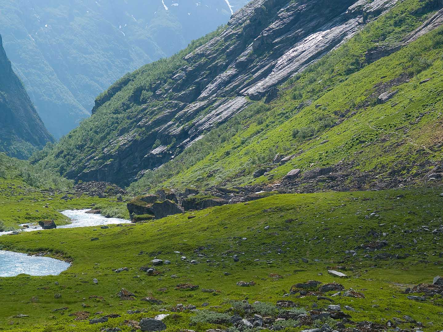 Tenkte meg at denne kanskje ble litt lett for en vestlending. Tanken var at nede fra Oppstryn ser en ikke selve toppen av Stryneskåla og at dette bildet hvor toppen er med, kanskje kunne gjøre oppgaven litt vanskeligere. Bildet er tatt fra setrene inne i Glomsdalen. Nei, jeg har ikke gått den ruta du nevner. De gangene jeg har vært på Skåla, har jeg enten kommet fra Tjugen i Loen eller utover Tindefjellryggen som for øvrig er en kjempeflott tur.