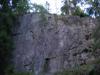 Hvem skulle tro at det fantes en slik vestvendt vegg i en østvendt bratt li. Her er den altså. Det har regnet katter og bikkjer i det siste, så det er vanskelig å bedømme fjellets kvalitet annet enn at det virker ganske glatt, kanskje litt som på Hauktjern der veggene har få lister og riss.