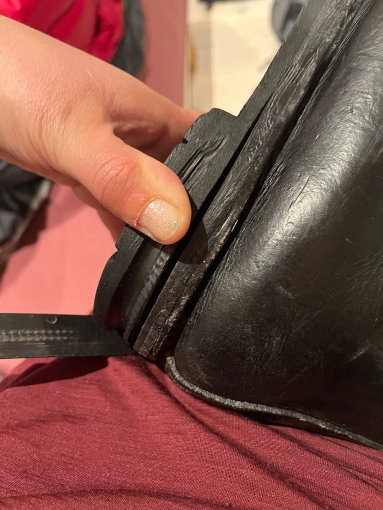 Etter påskas utfart fant vi ut at ene sålen på husbondens Varg Polar-støvler har løsna. Det er det nederste laget av sålen (ses som en smal dvart sprekk på bildet). Er det noen som vet om skomaker som fikser sånt? Går det evt å lime selv - hva slags lim bruker man da, i tilfelle?