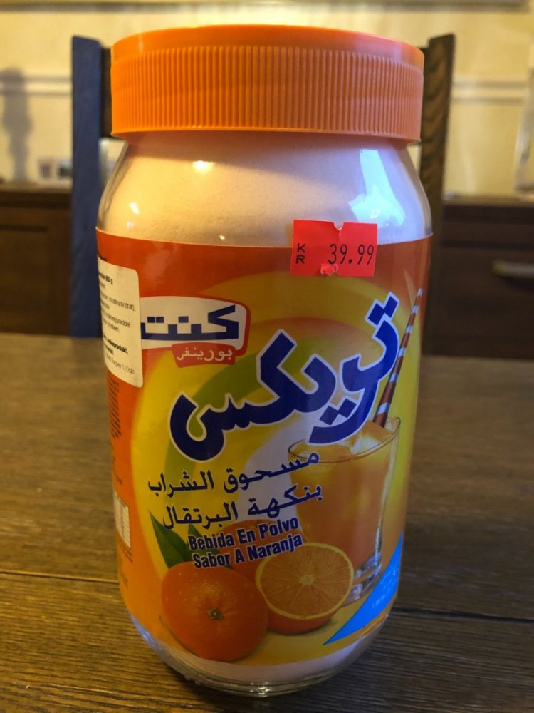 På «Asia-mat»-butikker (hvertfall på vår lokale) selger de appelsinsaft-pulver på store glass. Dette smaker overraskende godt og har vært veldig populært i varmen, særlig for familiens yngste medlemmer, på turer i sommer. Jeg har tidligere brukt istepulver hvis jeg har ønska smak på vannet, men kjekt med variasjon! Denne kommer til å gjøre godt for snøsmeltevannet på vinterturer også 😁