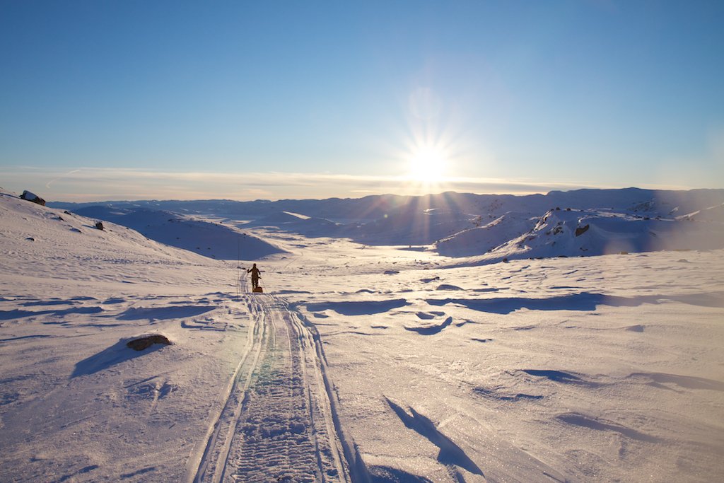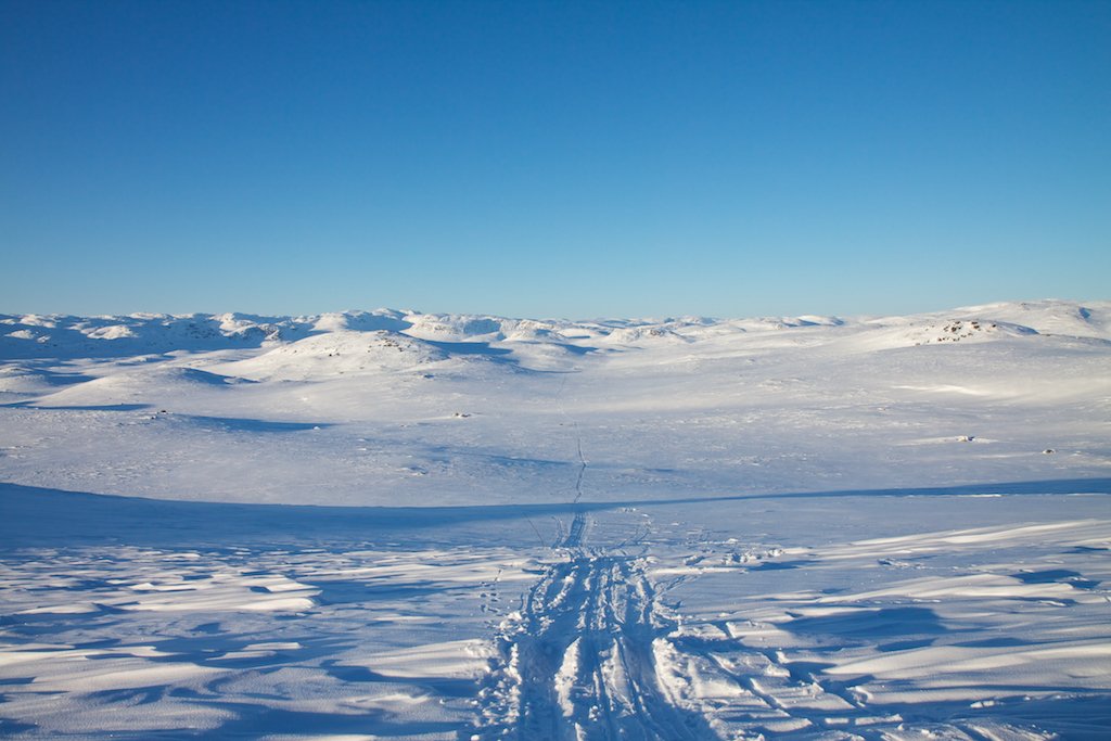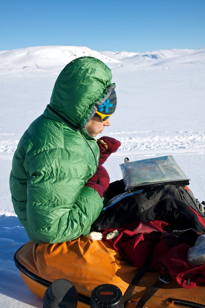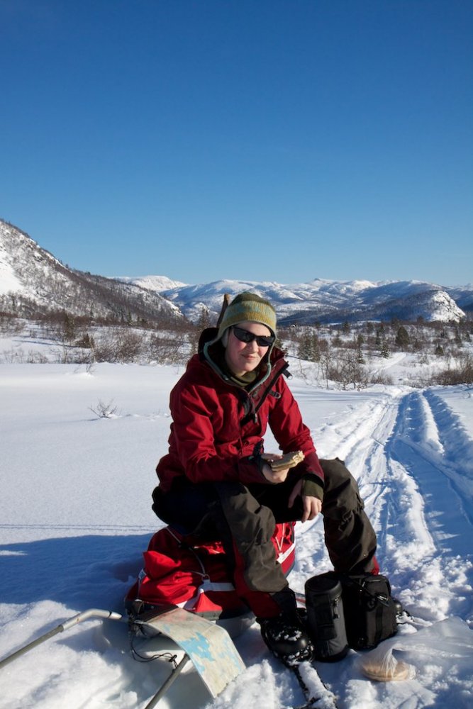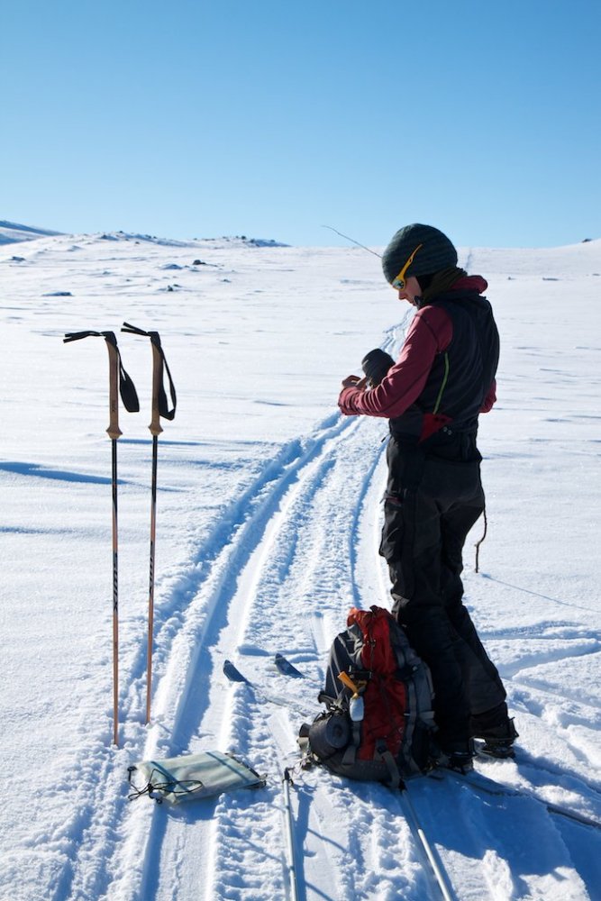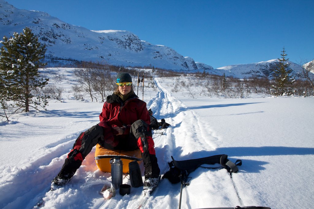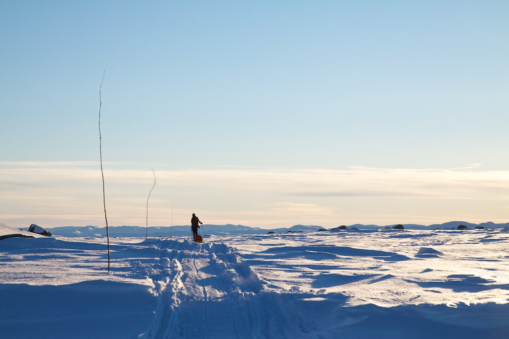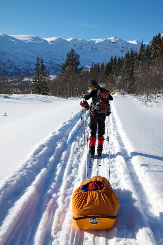 Når man av ulike grunner ikke får farta til fjells sjøl for tida, men abstinensene river i kroppen, er det å mimre over tidligere sprell en god substitutt. I det herrens år 2010 (a.k.a. mitt tidligere liv: uten unger, jobb, hus..) hadde ei venninne og jeg en fin tur over Hardangervidda i februar. Denne turen var ikke «bare» for forlystelsens skyld - Ane, som gikk 2.året friluftslivsstudie trengte en egenferd i studiepoenga – derav tittelen. Jeg takka ikke nei til en ukes pause fra transkribering og diktanalyse på engelskstudiet mitt. Her kommer turrapporten! Hvis over 10 år gamle turer er for utdatert til å skrives om, får den slettes. Søndag 21.feb står vi klare ved sørenden av Sønstevann, Imingfjell. En overlessa Fjellpulken Snerten og en tilsvarende overlessa, lettere modifisert barnepulk fra 70-tallet er våre følgesvenner for de kommende dagene. Sjåføren følger oss et stykke nordvestover før han ønsker oss god tur og snur tilbake til bilen igjen. Vi labber vestover over vannet og slår opp turens første leir på neset som stikker ut i Vikvatn. Fytti så tungt, og kaldt og jævlig. Kroppen min streiker helt, jeg er kvalm og svimmel. Ei natt med frysing og kaldsvetting gir lite søvn, og jeg tar meg i å savne transkribering og diktanalyse. Her er det nødvendig å gå litt tilbake i tid for en forklaring. Jeg hadde akkurat kommet hjem fra en to ukers studietur i York i England - les to ukers «pub-til-pub-vandring», hvor både frokost, lunsj og middag gjerne ble inntatt på pub (billig pint!), i vårlig klima. Vi tok jo den kulturelle delen av studiet på alvor, må vite. Jeg var knapt edru da flyet landa lørdag morgen, vi hadde hatt en heidundranes avslutningsfest kvelden før. Mye var ferdigpakka fra før vikingraidet over Nordsjøen, resten ble hivi i pulken innimellom noen sårt tiltrengte powernapper. Egg, bacon, hamburgere, chicken curry og usunne mengder øl ligger som en tung stein i magen og formen er antakelig på sitt bunnpunkt for tjueåra akkurat nå. Det er litt flaut å innrømme at jeg faktisk er fyllesjuk. Ny dag, nye muligheter – vi fortsetter vår labbing vestover. Havrebomber fra fryseren (rester fra Svalbardpåske to år før) som lunsj gir den ustabile magen litt å jobbe med... Ved Soltjønnhovda får vi øye på en liten villreinflokk oppi lia, kjekt! Vi glir nedover mot Mårbu og kveldssol-strålene glitrer i snøen. Det oppstår en liten interessekonflikt; jeg er sterkt frista til å tilbringe natta inne på hytta, når vi nå likevel er her rundt leirslagingstid. Få tørka den fylleangst-svette-nedisa posen min og nyte litt ekstra komfort. Ane er skeptisk, hun har sett for seg en egenferd av det edle slaget. Etter litt om og men (og mulig noen tårer fra meg) ender vi opp med å innta herberget. Kvelden avrundes med en yatzy-runde, og yatzy med seksere må selvsagt dokumenteres. Morgenrutinene våre på tur er godt innarbeida. Vi kjører «slaveordning» av matlaging og snøsmelting, med vaktskifte etter frokost. En annen fin greie er omhyggelig fordeling av rosiner i frokostblandingene. Jeg hæler ikke rosiner, men rakk ikke (orka ikke) å pelle ut alle rosinene fra mine «God Dag Frukt»-frokostrasjoner under mellomlandinga før turen. Disse plukkes derfor omhyggelig ut, og omplasseres til Ane sin frokost. Repeat hver morgen. Det er kaldt å komme i gang i dag også, men kroppen lystrer noe bedre, og vi har fint vær. På vei mot Austre Hettehove får jeg en sånn «åpenbaringsfølelse», en rus, som av og til slår til i møte med naturen. Fjellet er opplyst av morgensola, vi går fortsatt i skygge. Jeg kan lukke øynene og fortsatt kjenne tiltrekningskrafta fra fjellet. Blir helt satt ut av hvor stort det er, og hvor liten jeg er i møte med det. Får frysninger på ryggen som ikke skyldes temperaturen eller formen. Står sånn og bare nyter tilværelsen en stund, inntil føttene gir klar beskjed om at her er det bare å gå på videre for å få varmen. Følelsen forsøkes foreviget med kamera først, som vanlig uten å lykkes helt. ' "The smaller we come to feel ourselves compared to the mountain, the nearer we come too participating in its greatness. I do not know why it is so..." Arne Næss sr. "Jeg står i morgenlyset på høgda, aleine med mitt eget spor i nysnøen. Stillheten kimer i ørene mine, -jeg kommer liksom så nær meg sjøl. Så midt i sentrum at det nesten gjør vondt." - Hans Børli Et glimt av Gaustatoppen i det fjerne! Nå følger vi Søre Nordmannsslepa, og på vei over til Viuvatnet dukker det opp to enslige rein i lia. Vi slår leir helt i vestre ende av vannet, bardunerer godt – her ligger vi utsatt til. Det blir heldigvis en rolig natt, men også den kaldeste i løpet av turen. Dag fire setter vi kursen mot Lågaros – der har jeg aldri vært før. En stund skrår vi litt for mye sørover, men så finner vi riktig kurs, og kan innta en noget hustrig lunsj på utedassen til hytta. Vi ser en skiløper langt ute på Bjornesfjorden, første tegn til Homo Sapiens-liv så langt her på vidda. Vi fortsetter litt vest og ser spor etter en større reinsflokk ved Sørtjønnhovda. Videre dreier vi sørover i Flysjådalen, og slår leir ved den lille hytta Skardbu. Her dukker turens antakelig største faremoment opp; en sulten rødrev! Mens vi smelter snø og forbereder middag hører vi plutselig krafselyder utenfor teltet. Når Ane får opp yttertelt-døra ser hun rødreven; den gnager på pakkposen hennes med matrasjoner for resten av turen. 70-tallsbarnepulken har bare åpning bakerst, reven har klart å gnage hull i stoffet der framme hvor pakkposen lå inni. Den blir jaga vekk, og pakkposen blir med inn i teltet for natta. Neste morgen er rødreven der fortsatt, den er ikke akkurat folkesky. Sikkert litt av hvert av matrester å få tak i her ved denne hytta, den brukes vel av jegere om høsten. Vi sier farvel (den følger etter et lite stykke) og begir oss oppover motbakkene i Skardbu-Tjønndalen, ov