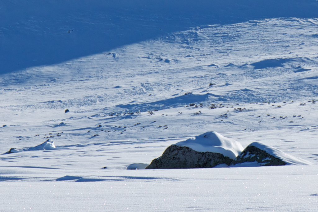 (Nok en mimre-tråd, bær over med meg. Deler av turrapporten vil gi mer mening om man har lest om Hardangervidda-turen fra året før) Ny vinter, nye turmuligheter for Helan og Halvan (jeg er da altså den korte, brede). Denne vinteren er det PPU-studiet med fagdidaktikk og Vygotskys proksimale utviklingssone jeg rømmer fra. Vi har fem dager til rådighet, og pakker utstyret i de samme følgesvennene som sist. Underveis på kjøreturen fra Bø til Setesdalen sitrer det i kroppen. Setesdalsheiene er ukjent terreng vinterstid for oss begge. Får vi se villrein i år og? Hvordan blir været og føret? Klarer jeg å snik-styre ruta unna den oppdemma Rosskreppfjorden, eller vinner Solan? Denne diskusjonen har vi foreløpig ikke gått for langt inn i under turplanlegginga. Bilen parkeres ved Berg (like sør for Valle) og vi tar fatt på motbakkene. Sjøl om jeg ikke kommer rett fra en to ukers pub-til-pub-vandring denne gangen kjennes høydemetrene godt i beina. Været er heldigvis strålende, og turens første lunsj nytes i sola. Vi fortsetter oppover og passerer Stavskarhytta i subbetempo. Leiren settes opp så fort vi har kommet opp på høgda og det flater litt ut. Rein (pun intended) varmeluksus for føttene! Neste morgen, sol igjen! Vi treffer på nederlendere og tyskere på vei ut fra Bossbu. Her ser det fint ut, hit vil jeg på besøk en annen gang. Skituppene vendes sørover, over Kolsvatnet, ut ved sørenden og rundt Midtfjellsristin (ga følelsen av å vandre på verdens tak) til hytta Svartenut. Leiren etableres opp mot lia østafor hytta. Morgen dag 3 er en sånn perfekt en, hvor alt bare er helt nydelig. Skyfri himmel og vindstille, soveposene kan henge ute over pulkdragene og tørke i sola, frokostblandinga smaker ekstra godt. Ane tar et bilde av Selik og meg inne i teltet på doturen sin, og lykkes ganske godt i å forevige vår eufori. Etterpå er det min tur til å tømme blæra. Det er noen fjerne, uforklarlige lyder fra oppi lia bak oss, som jeg har stussa på fra inni teltet. Mens jeg sitter der på huk med stillongsen nedafor knærne ser jeg noe som beveger seg på åskanten mot horisonten. Det der er så visst ikke steiner – det er villrein! Mange! «Ane!» utbryter jeg lavt i retning teltet. «Lia bak oss er full av villrein!» Hun tror jeg tuller, hun var jo akkurat ute sjøl uten å se noe. Jeg må zoome inn på bildet på kameraet for å få henne overbevist. Mange av dyra ligger i ro, andre rusler rolig rundt. De har nok tilbragt natta her, som våre naboer. En perfekt morgen blir bare enda bedre! Vi prøver å bryte leir uten for mye lyd for ikke å skremme opp reinen, her er det vi som er på besøk, og de er sårbare. De observerer oss, men viser ingen tegn til å reagere noe særlig – antakelig fordi de ikke kan kjenne noen lukt. Ferden vår fortsetter sørvestover og vi passerer etter hvert en ny flokk på vår venstre side. En scooter har kjørt før oss og stikka ruta videre, så noen store orienteringsutfordringer vil det ikke bli denne turen. Ved Skrubbenuten går det ikke lenger å utsette diskusjonen om mulig krysning av Rosskreppfjorden, vi må ta et valg – gå rett sør over bukta Kverevatn, eller følge kanten av vandet på østsida. Vinterløypa er stikka over vannet, og jeg legger min indre Ludvig til side. Vi rusler over, og det går helt fint, selvfølgelig. Vi krysser et annet skispor som ikke kan være så mange dagene gamle. Jeg veit at ei venninne og kjæresten ofte er på tur her oppe, og ganske riktig – når jeg snakker med henne etter hjemkomst bekrefter hun at de var her i dette området to dager før oss. Det kan ha vært deres spor! Oppover mot Vardsvasseggene kan vi se tilbake på sporene våre fra mesteparten av dagens etappe, en storslagen utsikt. Mot sør aner vi konturene av et værskifte; disig luft med ispartikler og skyer. Vi slår leir ved et lite vann i Smogedalen, og GPSen viser at vi har truffet ganske akkurat på Suleskard-vegen. Godt det ikke er noen overhengende fare for bobilturister akkurat nå. Dag fire våkner vi til det fryktede væromslaget, det blåser friskt og med snødrev i lufta. Vi velger å følge den stikka løypa sørover til Øyuvsbu, sjøl om det blir en liten omstikker. Ved Øyuvsbu blir vi ikke frista til å ta lunsjen ved «Koseplassen», skiltet virker nokså malplassert akkurat nå. Oppover i lia mot vegen igjen går et lite snøskred til venstre for oss, på trygg avstand. Fra nå av følger vinterruta Suleskardvegen hele veien ned til Fardalen. Det blir en hustrig etappe med stedvis i overkant bratte sider ovenfor eller nedenfor oss for min indre Ludvig. Heldigvis er det også muntre situasjoner underveis, som da vi diskuterte om vi faktisk kunne kjenne fe-rista under snøen. Ved Myklestøyl settes teltet opp for siste gang for turen, og Ane graver den siste arbeidsgropa i ytterteltet. Siste dag byr på samme typen vær, men vi har jo etter hvert kommet oss ganske langt nedover og er sånn sett mer beskytta for været. Nedfarten fra Fardalen, der vinterløypa slutter, og ned til Nomeland i Setesdalen, er en interessant opplevelse. Forsøk på å ta seg fram uti skogen parallelt med veien gis opp, vi prøver lykken med ei ski på veien og ei litt oppi brøytekanten for bremsing av farten. Bilistene vi møter ser ut som de lar seg underholde av seansen. Nede ved Nomeland kommer veien vår ut ved en barnehage hvor ungene er ute og leker. Vi er visst et spennende syn, og får mange spørsmål om hvor vi har vært, hva vi har gjort og hvorfor vi ser ut som vi gjør. Nå gjenstår bare siste etappe – og den håper vi inderlig at vi får litt hjelp med. Slagplanen for å få haik opp til Berg ved Valle igjen diskuteres – bør en av oss gjemme seg i bakgrunnen mens den andre står på veien og haiker? Pulkene, det er kanskje best at de ikke synes? Vi prøver lykken, og jadda! En lokal helt med pickup og tre seter foran stopper. Pulkene kan bli med på lasteplanet. Flaks! Praten går på bilture