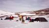 - Bedre sent end aldrig - her en lidt forsinket turrapport. Ankomst til Bessvatnet torsdag den 9. maj. Onsdag aften den 8. maj 2002 kl. 22 tager vi 10 voksne danskere fra København mod Jotunheimen til en vårtur i Kristi Himmelfarts-dagene. Gruppen varierer fra ingen erfaring med skiløb og fjellheimen til megen erfaring. Der vælges en tur med en basecamp model. Torsdag formiddag ankommer vi til Bessheim, hvor vi får lov at parkere bilerne. Der pakkes og vi går derfra ca. 400 højdemeter op til Bessvatnet, og slår 4 telte op på sneen. Hen på eftermiddagen tages en tur for alle over søen til Bandet, som flere ikke havde set. Det er jo et imponerende udsigtssted, og det var første gang jeg stod her om vinteren. Udstyret synes at fungere godt – også for en nybegynder på ski, som heldigvis var godt sportstrænet. Fredag - tur til Besshø Fredag er det også pænt vejr dog med nogen vind, og vi vælger alle at gå på Besshø. Alle har fælder på skiene. Den eneste lidt vanskelige passage for nybegyndere er det lidt smalle stejle stykke vest for Besshøbreen. Fantastisk udsigt fra toppen. Da vi kom tilbage til teltlejren mødte vi en overraskelse. Eet telt var helt væk. Eet telt stod stadig pænt og to andre hang og flagrede i enkelte snepløkker og bagagens vægt i teltet. Heldigvis blev det forsvundne telt fundet ca. 200 m derfra. Afsmeltningen af sne havde været været omkring 30 cm i løbet af dagen på grund af vind og sol. Men under teltene var ingen væsentlig afsmeltning. Det lærte os lidt om at lange snepløkker ikke altid er tilstrækkelige – der må også gerne sten til. Heldigvis gik det godt denne gang. Lørdag – langtur til Surtningssui Lørdag valgte vi tre at gå til Surtningssui af en lidt utraditionel rute via brearmen sydøst for Surtningssui – se foto heraf. Det var igen pænt vejr, men vi kom desværre sent af sted – kl. 11. Vi løb på Bessvatnet til Bandet op langs sommerstien mod Memmurubu. Vi kiggede ned til Øvre Russglopet af en stejl sneflanke lige øst for 1562, men vi vovede ikke at køre ned her og tog en omvej ca. 1 km mod vest og ned. Ved starten af breen bandt vi os ind i tov. Brearmen op var stejl men rimelig let gået i venstre side, hvor der lå en del sne. Jeg har ikke på nettet kunne læse om den passage, men måske kan andre bidrage med noget fra anden litteratur. På toppen af breen gik vi over mod snefanen ca. 400 m nord for toppen for at komme os op. Her valgte vi at sikre med sneankre, da faldet mod Blåbreen er virker faretruende. Opgangen her kan sikkert variere fra år til år. Og herfra er der kort til toppen – igen med strålende udsigt. Vi tager samme vej tilbage og ned på toppen af breen. Det er nu blevet relativt sent og kulden sætter ind, med skare på vej ned af Surtningssuoksli. Det er godt med stålkanterne, men det tærer alligevel på kræfterne i lårene. På de sydlige skråninger ned mod Russvatnet er megen af sneen smeltet og synes ikke nem at passere. Imidlertid er der megen sne langs Blåtjørnåi, som også er en rivende elv, og det er nu ganske mørkt. Det sætter nogen krav til at styre skiene, så man ikke ender i elven. Vi kommer dog vel ned til Russvatnet og er naturligvis lidt forsigtige i valg af rute ud på isen her med den megen vandføring. Der ligger fugtig blød sne på isen. Nogle steder står der vand oven på isen især i den østlige ende af søen, hvor vejvalget må kigges lidt nærmere ud. Og til slut går turen langs stien tilbage op til teltlejren, som vi når ca. kl. 2 om natten godt slidte. Og rigtige venner bød her på middag og øl – super! Jeg er dog sikker på at mere flinke nordmænd på ski kan gøre en sådan tur væsentligt hurtigere. I løbet af lørdagen er der også kommet nogle steder med vand oven på isen af Bessvatnet. Rig på oplevelser pakker vi sammen Søndag og tager tilbage til København.