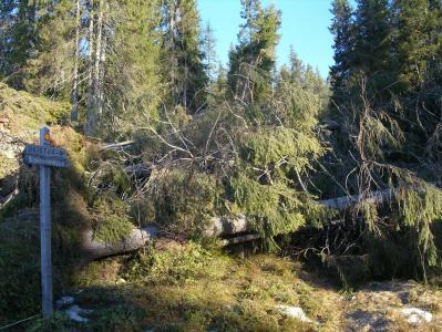 7.30 i morges parkerte vi bilen og trasket mot Skjelbreia (vann i Bymarka ved Trondheim) Delvis bare stier, endel snø, og mye is, undertegnede ramlet to ganger og husbond en gang Omsider tok vi på brodder og da gikk det bra resten av turen. Frokosten ble inntatt i solveggen ved hytta Grønlia, sola varmet og det var deilig å sitte å kjenne på vårfølelsen. Hakkespetten var særdeles aktiv på morgenkvisten, den også. Solskinnsløypa ved Grønlia var stengt av utallige rotvelt etter stormen Ivar og kan vel døpes om til Stormløypa for tiden. Det var såvidt minusgrader da vi startet, men helt vindstille og sola kom over tretoppene etterhvert. En nydelig dag og vi hadde stien for oss selv helt til vi gikk fra Grønlia - fin start på dagen!