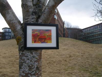 Kulturell og eksotisk morgentur på Ladestien i dag! Ved Statoilbygget hang kunsten og ved steinerskolen fant jeg påfuglen, du verden hva vi har i trøndelagen!