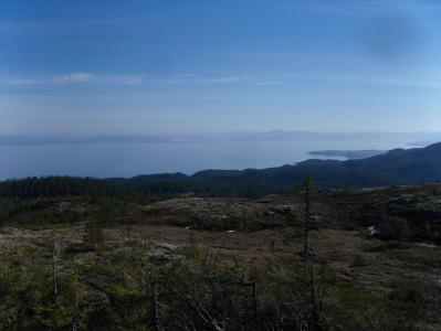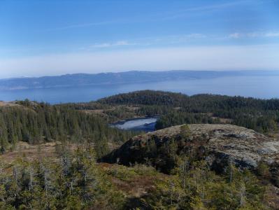 Tidlig en søndagsmorgen, dvs i dag, parkerte vi bilen i Tømmerdalen og trasket opp til Herbernsheia i strålende sol. Vi gikk sakte i oppoverbakkene, jeg hadde hatt hodepine i over et døgn og ville ikke forverre den. Opp kom vi og hodet ble stadig bedre. Vi satt en god stund på toppen og nøt den flotte utsikten til alle kanter. Vi fikk til og med se en fjellvåk som seilte sakte rundt i en diger sirkel før den fløy mot Stadsheia bak oss og forsvant. Litt av en bonus, syntes vi (Fikk tatt et bilde av den på lang avstand, da jeg kom hjem og forstørret det konkluderte jeg med at det var fjellvåk - den har noen tydelige mørke flekker under vingene. Men er ingen ekspert på fugler, så...) Etter en lang rast tok vi turen ned til Herbernsdammen, og satte oss ved dammen for kaffepause nr 2. Omsider dukket noen turgåere opp, de gikk videre oppover bak Herbernsdammen. Vi var fornøyde med 3 flotte timer og ruslet nedover stien mot bilen. Det ble en veldig flott liten rundtur i dag. (Og hodepinen forsvant helt hurra!) Herlig dag i sol og vindstille, godt påfyll før været slår om senere i uka, de truer iallfall med det