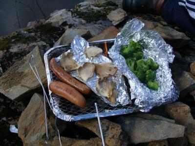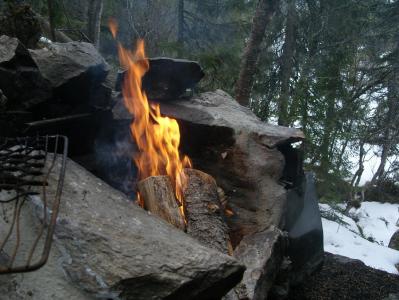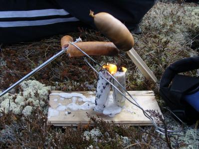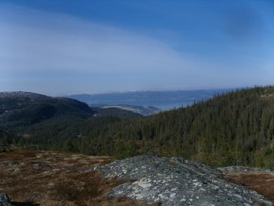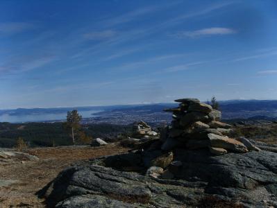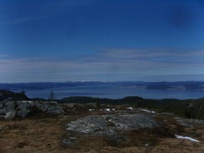 To innlegg på rad gitt, jaja, det er jo påske I dag gikk vi opp på Gråkallen i strålende solskinn, skikkelig påskestemning med snøklatter her og der. Første bilde er innover Trondheimsfjorden, med Tautra omtrent midt i bildet. Vi våget ikke tenne bål, mosen var knusktørr, men fantasien setter ingen grenser når man vil grille! Pølsene ble ganske varme - og smakte godt Flott utsikt utover Trondheimsfjorden også! Endel snøflekker rundt Gråkallens ene kuppel som står igjen etter at stormen Ivar tok den andre. Vardeentusiastene har vært på ferde også, byen i bakgrunnen.