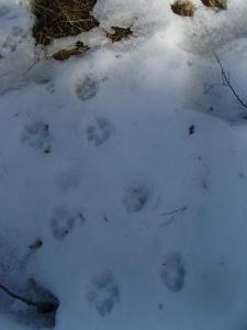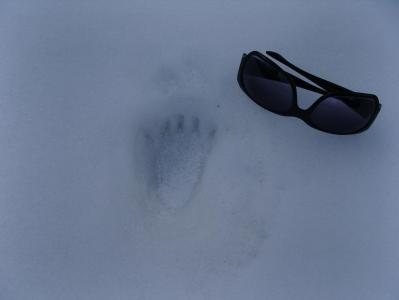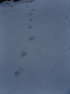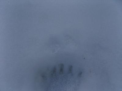 Dette må vel være spor etter rev? (størrelsen var bittelitt større enn fyrstikkeska jeg ikke ikke hadde) Bigfoot lusker også rundt ved Herbernsdammen