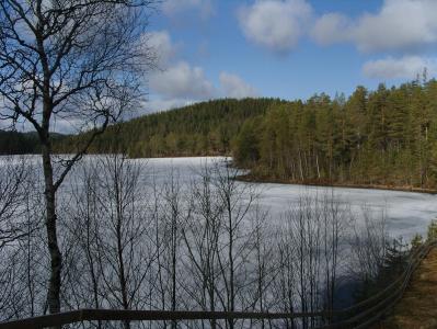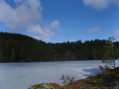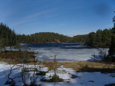 På ukjente stier.... Vi har tatt turen til Jervfjellet mange ganger, men idag tenkte vi å finne en annen vei til toppen, nemlig fra Saksvikvollen. Før har vi alltid gått fra veien mellom Jervan og Jervskogen skianlegg som går nord for Jervfjellet. Et tredje alternativ er å gå fra Mostadmarka/Rolset (skal testes ut til våren) Det var overskyet og fin temperatur og delvis snøsørpe, myk is og helt bar sti innimellom. Vi kom nesten halvveis tror jeg, da vi ble usikker på hvor vi skulle gå. Det ble etterhvert ganske dyp og råtten snø, så vi fant ut at vi skulle snu. Prøvde så en annen sti, eller fulgte iallfall fotsporene etter noen og kom opp på en kolle hvor vi fikk fin utsikt utover Jonsvannet og jammen så vi plutselig Jervfjellet også! Jaja, så vet vi det til en annen gang Vi hadde med kart, men stien var ikke inntegnet, så det hjalp ikke så mye. Men men, vi tok lunsj i myk mose og koset oss med kaffe, kakao og god mat. Vi tar turen om igjen når snø og is er borte og det er lettere å se hvor stien går. Vi hadde naturen helt for oss selv helt til vi var nesten tilbake til Saksvikvollen, da møtte vi to som lurte på om dette var rette veien til Jervfjellet Håper de fant frem til toppen! Fin tur selv om vi ikke kom til topps i dag, satser på bedre lykke neste gang... Lite is på Jonsvannet til å være tidlig i mars!