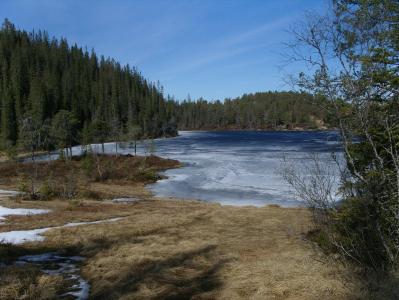 Turen i dag gikk rundt Vulusjøen i Malvik Statsalmenning i strålende sol. Ved Husmyra tok vi av fra bomvegen og fulgte skiløypetraseen. Stort sett bar sti, men litt snø innimellom. Fremme ved Vulusjøen fant vi neset vårt og engangsgrillen ble tent i en fei, vi var skrubbsultne! På menyen stod pølser, speltlompe, sopp og brokkoli, og det smakte ypperlig. Is på vannet enda, men det varer vel ikke lenge. Sola varmet godt og vi ble sittende en god stund før vi fulgte stien langs vannet mot Vulusjøhytta. Stormen Ivar hadde herjet ille i området her også. Vi så hverken folk eller fe før vi nærmet oss bilen, da møtte vi et par til på tur.