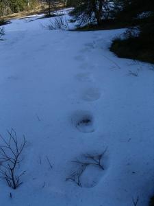 Noen som vet hvilket dyr som har laget disse sporene? Kan ikke huske å ha sett denne typen spor før. Ca 30 cm mellom sporene. Vi så dem ved Vulusjøen i dag, de var ikke ferske.