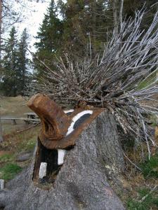 13. Palmesøndag opprant og vi tenkte vi skulle ta en tur i Bymarka og vifte litt. Men det er lite med palmegrener så tidlig på året i Trøndelag Men vi fant furu og einer som vi viftet ganske ivrig med, skjønt vi viftet ikke mer enn at trærne/buskene står like fine. Grantrærne fikk stå i fred, de viftet bra med god hjelp av vinden. Regn og sludd gjorde viftingen vår kortvarig, men det er jo tross alt palmesøndag kun en gang i året, og da skal det viftes! God påske!