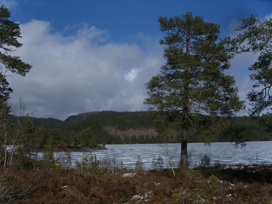12. Turen i dag gikk rundt Vulusjøen i Malvik Statsalmenning i strålende sol. Ved Husmyra tok vi av fra bomvegen og fulgte skiløypetraseen. Stort sett bar sti, men litt snø innimellom. Fremme ved Vulusjøen fant vi neset vårt og engangsgrillen ble tent i en fei, vi var skrubbsultne! På menyen stod pølser, speltlompe, sopp og brokkoli, og det smakte ypperlig. Is på vannet enda, men det varer vel ikke lenge. Sola varmet godt og vi ble sittende en god stund før vi fulgte stien langs vannet mot Vulusjøhytta. Stormen Ivar hadde herjet ille i området her også. Vi så hverken folk eller fe før vi nærmet oss bilen, da møtte vi et par til på tur.