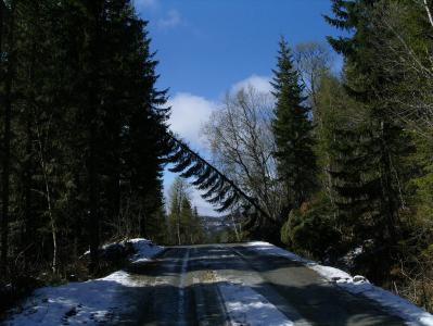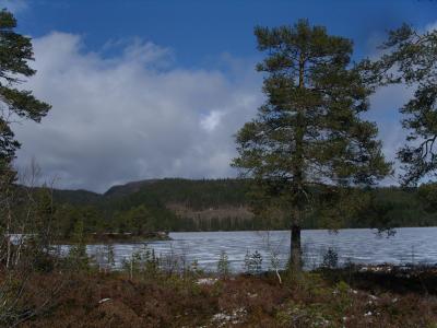 25. 7.30 i morges parkerte vi bilen og trasket mot Skjelbreia (vann i Bymarka ved Trondheim) Delvis bare stier, endel snø, og mye is, undertegnede ramlet to ganger og husbond en gang Omsider tok vi på brodder og da gikk det bra resten av turen. Frokosten ble inntatt i solveggen ved hytta Grønlia, sola varmet og det var deilig å sitte å kjenne på vårfølelsen. Hakkespetten var særdeles aktiv på morgenkvisten, den også. Solskinnsløypa ved Grønlia var stengt av utallige rotvelt etter stormen Ivar og kan vel døpes om til Stormløypa for tiden. Det var såvidt minusgrader da vi startet, men helt vindstille og sola kom over tretoppene etterhvert. En nydelig dag og vi hadde stien for oss selv helt til vi gikk fra Grønlia - fin start på dagen!