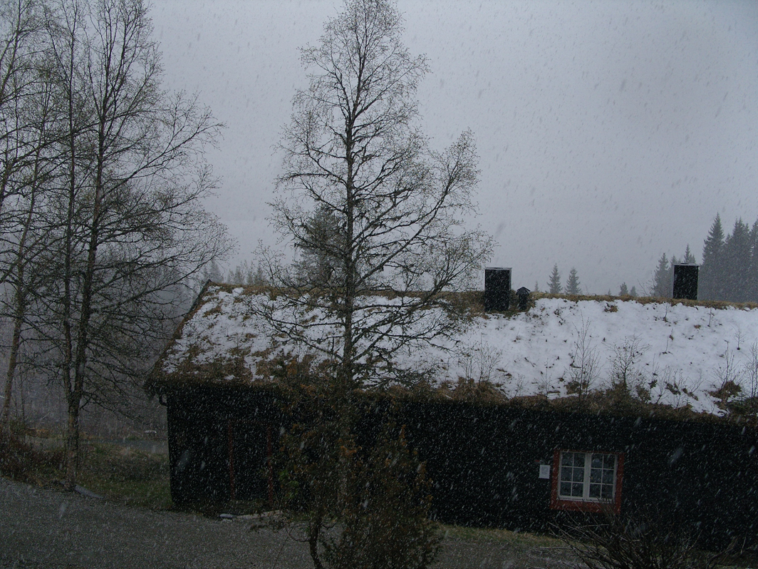 3. Været var så ymse før vi dro på tur i dag, men det ble adskillig bedre enn ventet! Vi parkerte på Diket og gikk bomveien mot Skjelbreia i sola, litt kjølig var det, ca 3-4 grader. Mange av trærne som stormen Ivar tok knekken på, var fjernet. Men et stod igjen på skjeve over veien. Det ble frokostmuffins ved demningen i enden av Skjelbreia, min egen vri uten mel og laktose, men med bacon og ost, smaker deilig! Så trasket vi videre langs vannet mot Grønlia i nydelig vær. Det var ikke mye folk å se, stort sett en og annen jogger. Vel fremme ved Grønlia fant vi oss en benk bak hytta, like bak et nytt troll skikkelig kreativt laget! Før vi rakk å sette oss kom en skikkelig haglbyge. Men den var fort overstått og innen vi spiste lunsj, skinte sola igjen. Tett med måltider når vi er på tur, men viktig med regelmessig næringstilførsel! Etter masse prat og oppspist mat gikk vi videre - ved hytta begynner hjemturen ca, siden vi går en slags sirkel for å komme tilbake til Diket hvor man parkerer. Slike turer liker vi, kjedelig å gå tilbake samme veien bestandig. 4 timer i frisk luft - hurra for 1.mai! Noen har heist det norske flagget i dag og andre har gjort en annen vri