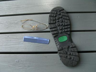 På en veldig våt telttur i Bymarka i vår, så var fiskeiveren så stor hos min bedre halvdel at han tråkket gjennom sivkanten ved et vann og fjellskoene ble temmelig søkkblaute. Skoene ble lagt til tørk ved bålet, men uten leirsko måtte han traske rundt i kun sokker. Vondt var det å gå, ganske kaldt også siden bakken var våt. Da var gode råd dyre, eller egentlig veldig billige. Jeg hadde et ekstra par ullsokker og vi hadde begge sitteunderlag og kniv var selvfølgelig med. Vi ofret en kant hver av sitteunderlagene og jeg skar til et par "såler" som ble puttet i ullsokkene og dermed hadde han et par ganske funksjonelle leirsko. Det ble iallfall temmelig mye bedre å gå og føttene holdt seg varme og tørre, sånn noenlunde. Man tager hva man haver