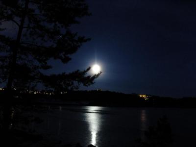 Liten tur på Ladestien tidlig i morges, vi glemte hodelyktene hjemme, men månen lyste såpass at vi så stien. Vanligvis går vi nedpå bergene i sjøkanten og setter oss der, men uten lykter var det like ok å finne et bord ved stien og spise frokost i det nydelige måneskinnet!