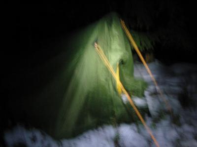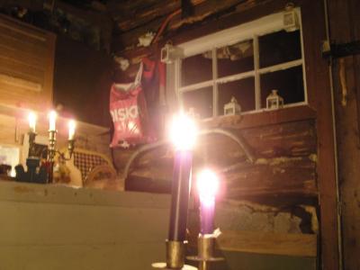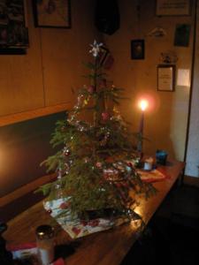 Kveldstur til Dreiers Minne i snøtung skog og en liten måne som lyste. Magisk vakkert i -10 grader og glitrende snø. Inne i koia var juletreet pynta og med levende lys var det ikke mangel på julestemning.