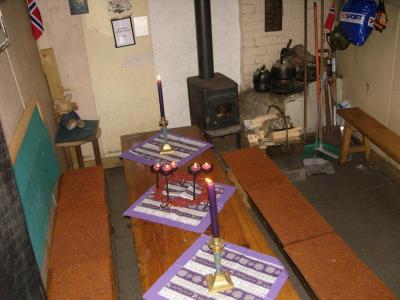 I går morges gikk vi først en liten tur til Dreiers Minne for å finne teltplass, og det fant vi. Ikke helt perfekt (dvs.ikke helt flat), men vi ville ha teltet ganske nær hytta for å bruke den om kvelden, og morgenen etter. 17.30 slo vi opp teltet i mørket mens det haglet og regnet om hverandre, og vi fant ut at vi ikke helt hadde taket på å sette opp telt i mørket, men omsider ble det tak over hodet. Hytta var opptatt, så vi laget middag utenfor teltet og spiste ute, og det var koselig, særlig fordi det etterhvert ble stort sett oppholdsvær. Utpå kvelden ble hytta ledig og vi fant den god og varm etter de forrige besøkende. Vi hadde en hyggelig kveld med litt godt å drikke, ikke for mye, vi ville jo helst finne igjen teltet etterhvert og uten å brekke noe i den noe bratte trappa ned fra hytta. Det ble en noe kjølig natt for undertegnede, da soveposeglidelåsen var ødelagt. God ide til senere turer å sjekke utstyret før turen! Heldigvis hadde jeg nok ullklær med så søvn ble det etterhvert, men ikke før de som lekte seg med snøskuter? et sted i nærheten tok kvelden de også. Man vil da kun høre skogens ro når man sover i telt! Vi våknet 6..30 og ute blåste det ganske hustrig. Etter en time mannet vi oss opp til å stå opp og ta med frokosten opp til hytta. Det ble fort fyr i ovnen og varm frokost, pølse med lompe og pølsebrød, og iskald cola attåt. Det smakte fortreffelig. To late timer senere ble det pakking og så gikk vi til bilen og kjørte hjem. Dermed var friluftsåret 2015 godt igang, hurra!