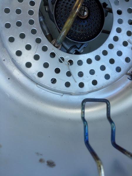 Det skal være et varmeskjold mellom tanken og brenneren http://tinyurl.com/nodqoa9 delen med nummer 2061. Tanken kan bli opp til 50 grader (anslått ved å holde på tanken) dsk