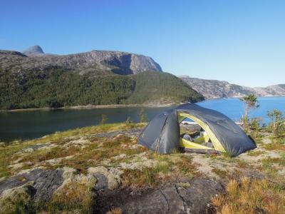 Før sommeren lovte jeg å komme med erfaringene mine med Helsport Reinsfjell superlight 2. Nå i sommer har jeg prøvd det 6-7 netter. http://www.helsport.no/reinsfjell-superlight-2 Mest i finvær (vanskelig å finne dårlig vær i nord denne sommeren), men en natt i lett regn og et døgn i tildels veldig sterk vind. Teltet er et selvstående kuppeltelt med to innganger. Målet er 120 x 230 cm innvendig, med ca 110 cm høyde. To fortelt og innganger er perfekt særlig på fine morgener når man kan lukke opp teltet og "slippe utsikten inn" i teltet. Jeg er veldig fornøyd med dette teltet. Plassen er kjempebra om man er alene på tur, og absolutt akseptabel om man er to stykker. To stykker og et barn skal faktisk også gå, men da er man på grensen (barnet kan jo eventuelt sove i en av forteltgangene). Fin takhøyde er det også. Siden jeg selv bruker liggeunderlaget Exped synmat ul i 65 cm bredde er det dog ikke plass til to slike store underlag Var ikke i nærheten av å komme borti noen av veggene i løpet av natten (er selv 182 cm høy). Teltet presterte fint hele tiden jeg brukte det. Fikk selvfølgelig ikke prøvd det i "dynkregn", men tror det skulle holdt bra da også. En av kveldene på tur i Åselidalen blåste det plutselig sterkt opp, og hele den natten og neste formiddag blåste det sterkt med tildels veldig sterke kast. Teltet motsto alt dette med ingen skader. Med 25 grader og vindstille da jeg ankom teltplassen hadde jeg ikke festet det altfor bra i starten, slik at jeg måtte ut og legge tunge steiner oppå pluggene/bardunene utpå kvelden da de sterke kastene kom. Da dette var gjort sto det bunnstøtt. Som uerfaren telter var sikkert ikke barduneringen perfekt heller, men teltet sto bra likevel. Basert på mine erfaringer med den sterke kastevinden så tror jeg absolutt at dette teltet kan brukes på høyfjellet sommerstid. Teltet veier på kjøkkenvekten 1995 gram inkludert alt. Reparasjonssettet veier 100 gram og kommer i tillegg. Kombinasjonen selvstående kuppeltelt, vekten og den gode plassen var det som i utgangspunktet førte til at jeg kjøpte akkurat dette teltet. Ventilasjonen virket å fungere bra. Jeg hadde flere drømmemorgener hvor det bare var å åpne opp begge inngangene og ligge og dra seg i solen og se på utsikten til begge sider.