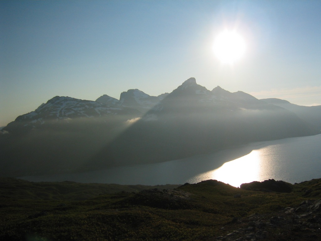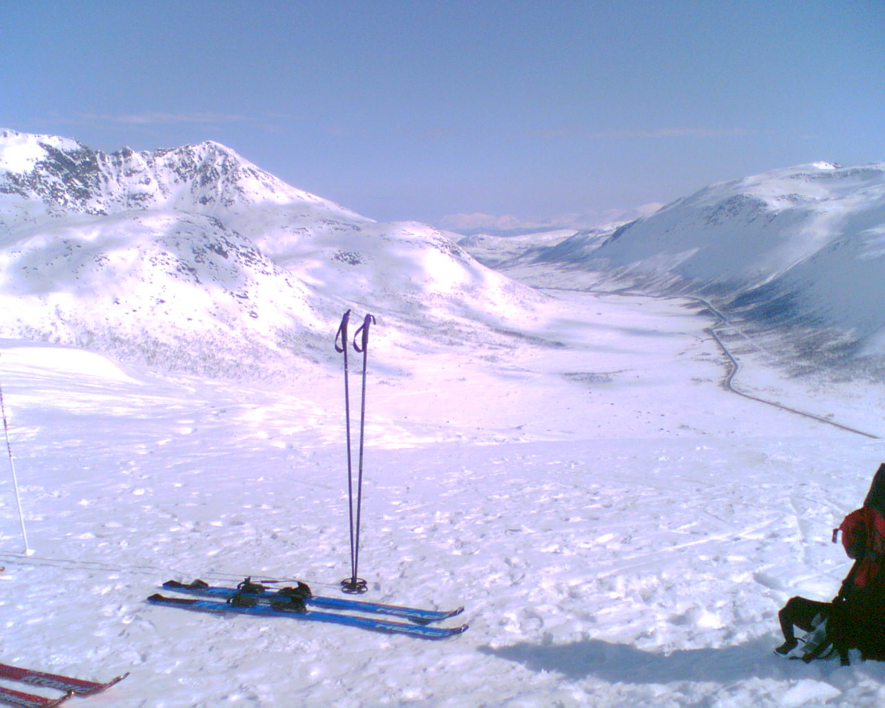 Under ettermiddagskosen på verandaen i går ble planen lagt. To av gubbene våre skulle ta seg av ungepass, så skulle tre "Frustrerte fruer" få seg en voksentur på fjellet. Som sagt så gjort. Klokka ble mye før vi kom oss i gang, men vi hadde det jo ikke travelt. Jeg møtte opp med mine gamle fjellski med Rottefella binding - uten skifeller. Har jeg gått på dem i femten år, så klarer jeg vel en tur til tenkte jeg. Men der tok jeg feil! Her skulle det ikke gås på vanlige ski med vanlige skisko, nei... Vel framme på Kattfjordeidet var det av med skoene og fram med plaststøvler som minnet mistenkelig om slalåmstøvler. Var det meningen jeg skulle GÅ med disse? Det var det visst. Min skepsis økte en smule. Og så kom skiene fram - tunge som f... og med feller under! Vel - har man sagt A så får man si B. I forhold til mine egne gamle ski var dette mye tyngre, og bakkene oppover så laaange ut. Jeg er ikke akkurat topptrent, så det ble litt pusting og pesing oppover bakkene. Men det gikk bedre enn jeg hadde forventet å gå rett opp. (Er vant til mer sikksakk-kryssing) Heldigvis stoppet de andre for å prate såpass ofte at jeg fikk pusten igjen! "Nå er vi snart oppe!", sa en av mine turfølger oppmuntrende - selv om jeg så at toppen var minst ei miiil unna. Og så var vi plutselig der! Det kom ganske brått, men så sto vi altså oppe på Tverrfjellet. Kanskje ikke den mest imponerende toppturen, men for meg var det flott å stå der oppe og nyte sola og utsikten. Verre var tanken på å komme seg velberget ned... Minnet om skjelvende lårmuskler etter nedfarten fra Rødtind på vanlige ski kom over meg et øyeblikk. Men det gikk over all forventning. Jeg tryna skikkelig et par ganger, første gang havna jeg på rygg i med hodet i nedoverbakke. Det tok noen svinger før jeg skjønte at jeg ikke trengte å svinge så mye som på mine egne ski! På knallføre svingte vi oss nedover, og jeg må innrømme at det var kjempegøy å kjøre med telemaskski! (Kanskje ikke den mest elegante kjørestilen - men pytt, pytt!) Mine to turvenner var veldig fornøyde med å ha vervet et nytt medlem i telemarkentusiastenes klubb, selv om utstyret nok må vente til skattepengene kommer... I morgen blir det basecamp i nærheten av Tverrfjellet med unger og alt. Bål, spade, akebrett og hele pakken. Så går vi på skift på "voksenturer". Håper å få lånt utstyr da også...