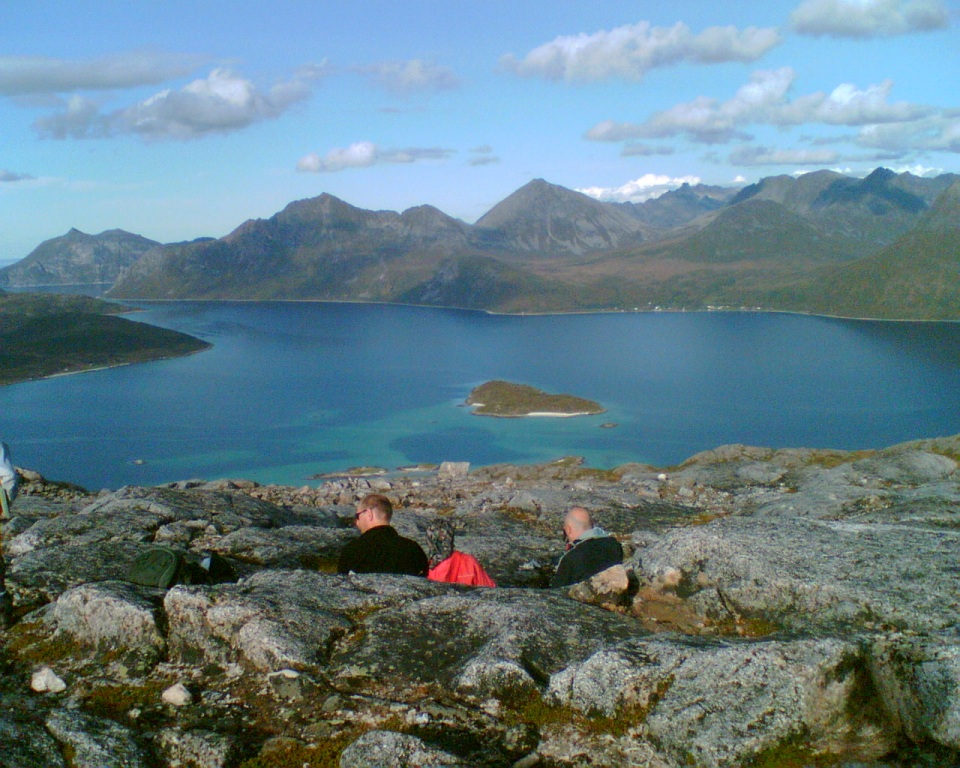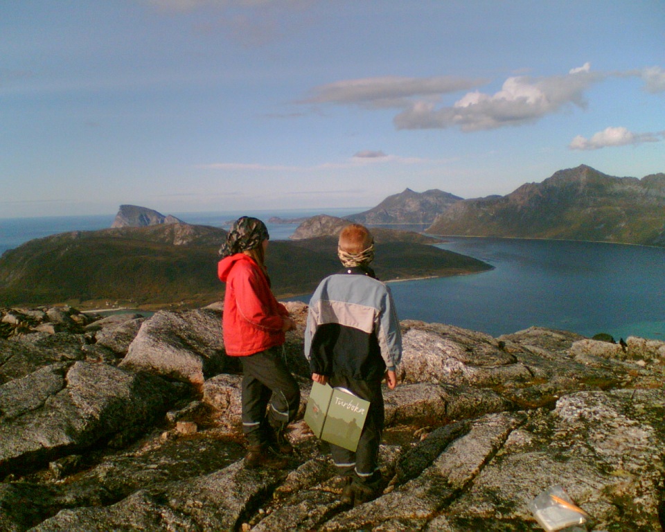 Katrine og Martin har vært med på "Ti på topp" i Tromsø i år. Her har de akkurat fullført sin femte topp på en måned. Turen til Lakstind tok seks timer opp og ned, inkludert pølsepause og x antall blåbær og tyttebær... Bildene er tatt med mobilen min - vi har rota bort laderen til digitalkameraet...