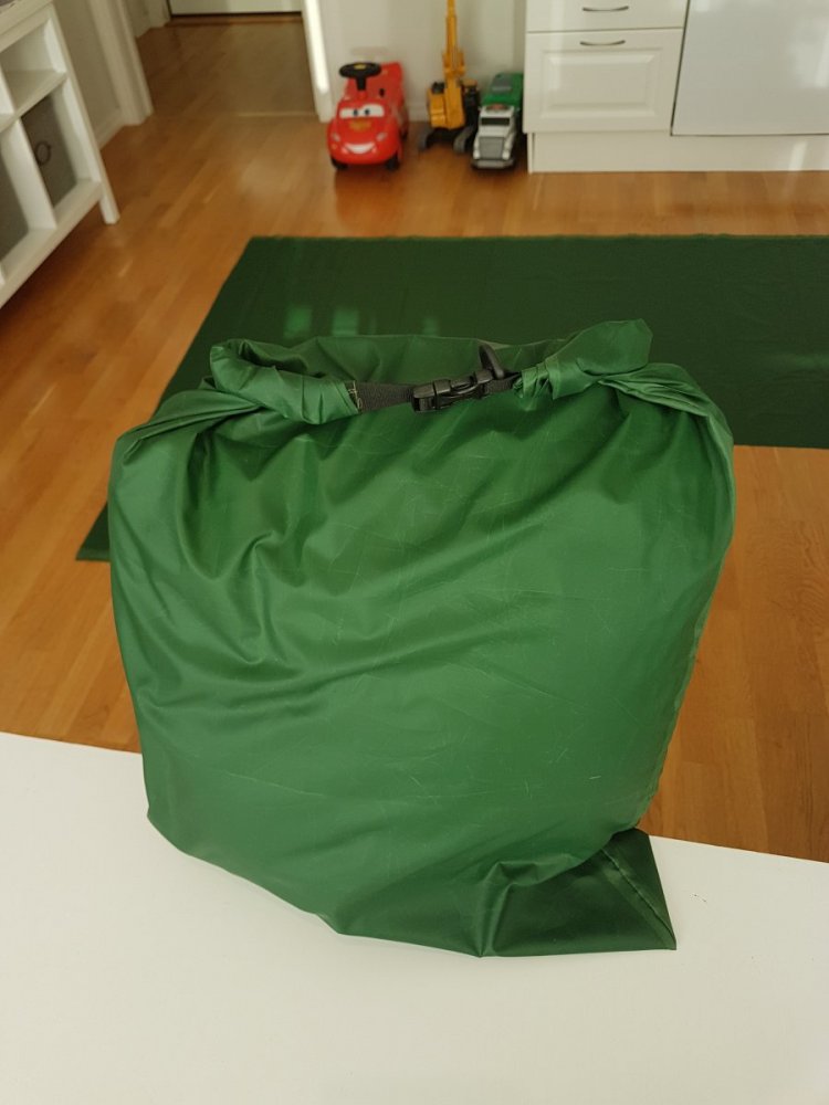 Da er steget tatt inn i den skumle DIY-verden. Etter en del trening med symaskinen i form av å sy julenisser, julesokker og elghoder kom det til slutt noen pakker fra extremtextil i posten. Planene er mange, motivasjonen er høy, men selvinnsikten er lav. Jeg har det med å haste litt i svingene og ikke tenke meg om. Det blir derfor fort sydd kanter på retten som egentlig skulle vært på vranga, og det hender jeg starter i feil ende. Sprettekniven har nok nesten vært i bruk like mye som symaskina selv foreløpig. Meen, det har da kommet noe ut fra baksiden av maskina som kan brukes i friluftslivet framover allikevel. Først ut var pakkposer. Forholdsvis enkelt sier de som har peiling. Brukte noen poser jeg har liggende fra før som utgangspunkt for design, og døste foran youtube i noen timer for å finne den beste framgangsmåten. Målet her var pakkposer i god størrelse som tåler en regnskyll. Ikke dønn vanntette i første omgang. Stoffet er silikonbelagt polyester, 75g/m2 2nd choice fra extremtextil. Veldig greit stoff å jobbe med. Ikke for glatt og tynt, slik jeg fryktet. Var bare å dure det gjennom symaskina som en gal. Videre brukte jeg 20mm airloc-klips og en 20mm D-ring. Båndet er et polyesterbånd på 20mm. Brukte vel ca 55-60 cm til hver pose. Klipte opp stykker på 50*145cm. Det ga ferdige poser på omtrent 45*70cm. Fin størrelse syns jeg, og et morsomt førsteprosjekt.