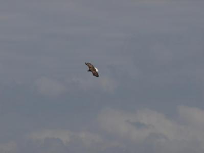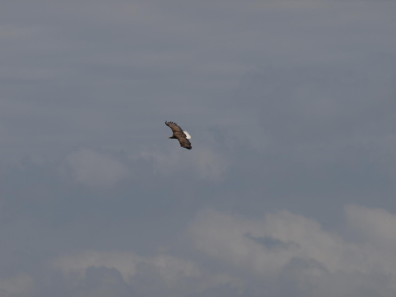 Mener at dette er havørn. Den hvite halen og det hvite hodet, synes jeg minner om havørn. Disse hekker også i toppen av ei furu, men er ikke mer tolerant enn at de lager sjau, selv om vi er flere hundre meter fra reiret. Kanskje det er det at vi har overhøyde når jeg tok bildene, og kunne se rett ned på reiret, som bekymret dem.