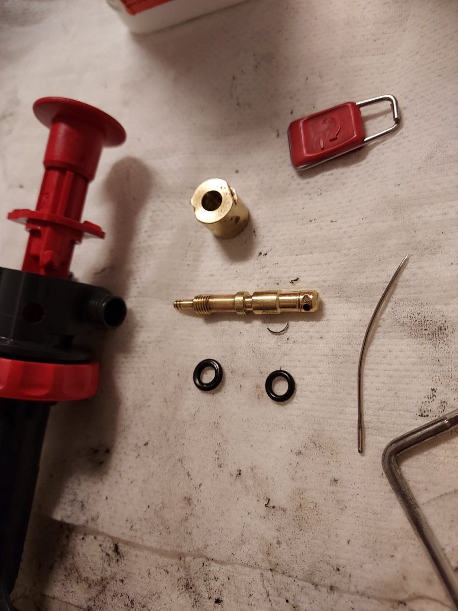 "Låner" denne tråden, da mitt spm handler om noe lignende. Opplevde lekasje, og har nå demontert pumpa. Mistenker at lekasjen kom fra denne delen: Byttet o-ringer, alt ok. Skrudde så av "control valve", men sliter nå med å få den på plass igjen. Har forsøkt å bruke o ring som fulgte med brenneren, men det virker som gjengene ikke vil ta inni pumpa. Bruker jeg en o ring som er litt større, får jeg ikke til å vri på regulatoren når den er festet fast på pumpa. Ser at det er et flatt parti på gjengene, er det noe hakk som skal på plass, som jeg ikke finner? Har forsøkt å rense med wd-40 osv. Men reguleringsventilen går bare rundt og rundt. Noen tips? Noen som vet om man kan kjøpe kun ny "control valve" eller om man må kjøpe komplett pumpe?