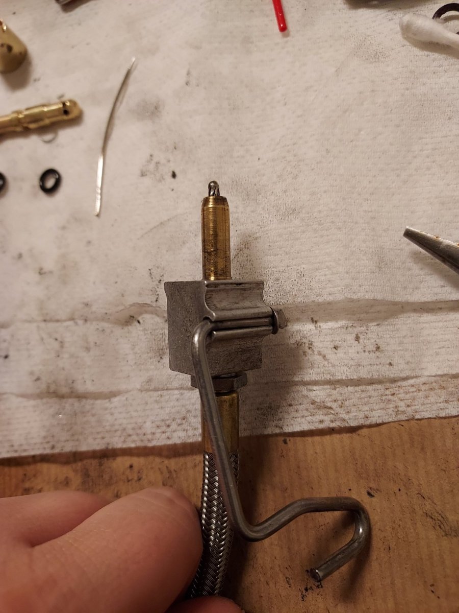 Det løste seg til slutt. Tror kanskje at gjengene hadde bøyd seg litt når jeg tok ut "valve", og at de måtte presses på plass når jeg dyttet inn igjen. Byttet selvfølgelig o-ringer etc samtidig, og nå brenner den fint. Men må nok bruke en del tid på å bli trygg på brenneren igjen, ubehagelig med lekkasje. Takk for innspill!