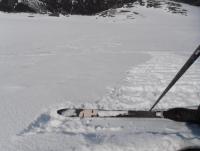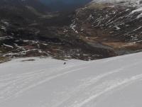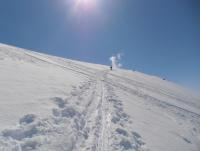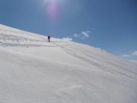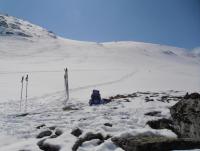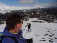 Og da var dagens mål Loftet (2170moh), en lett tilgjengelig 2k-topp som ligger direkte langs Rv 55 i Jotunheimen. Fin trening på vei oppe. 5 cm fersk nysnø fra omtrent 1300moh. Nordvestflanken ble såpass bratt at oss etterpå bestemte å endre dagens mål til 'fortoppen' Veslloftet istf Noe som var helt greit, for utsikten var rett og slett fabelaktig. Ble forøvrig litt overrasket over at en av de fellene begynte å løsne spontant, oppover på den bratte bakke. Bare et år gammel og kun brukt en gang iblant...